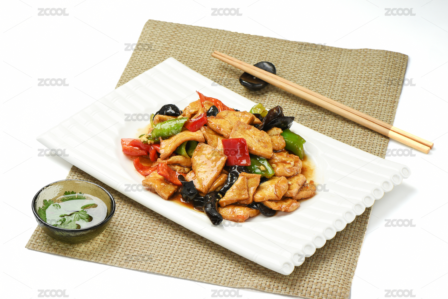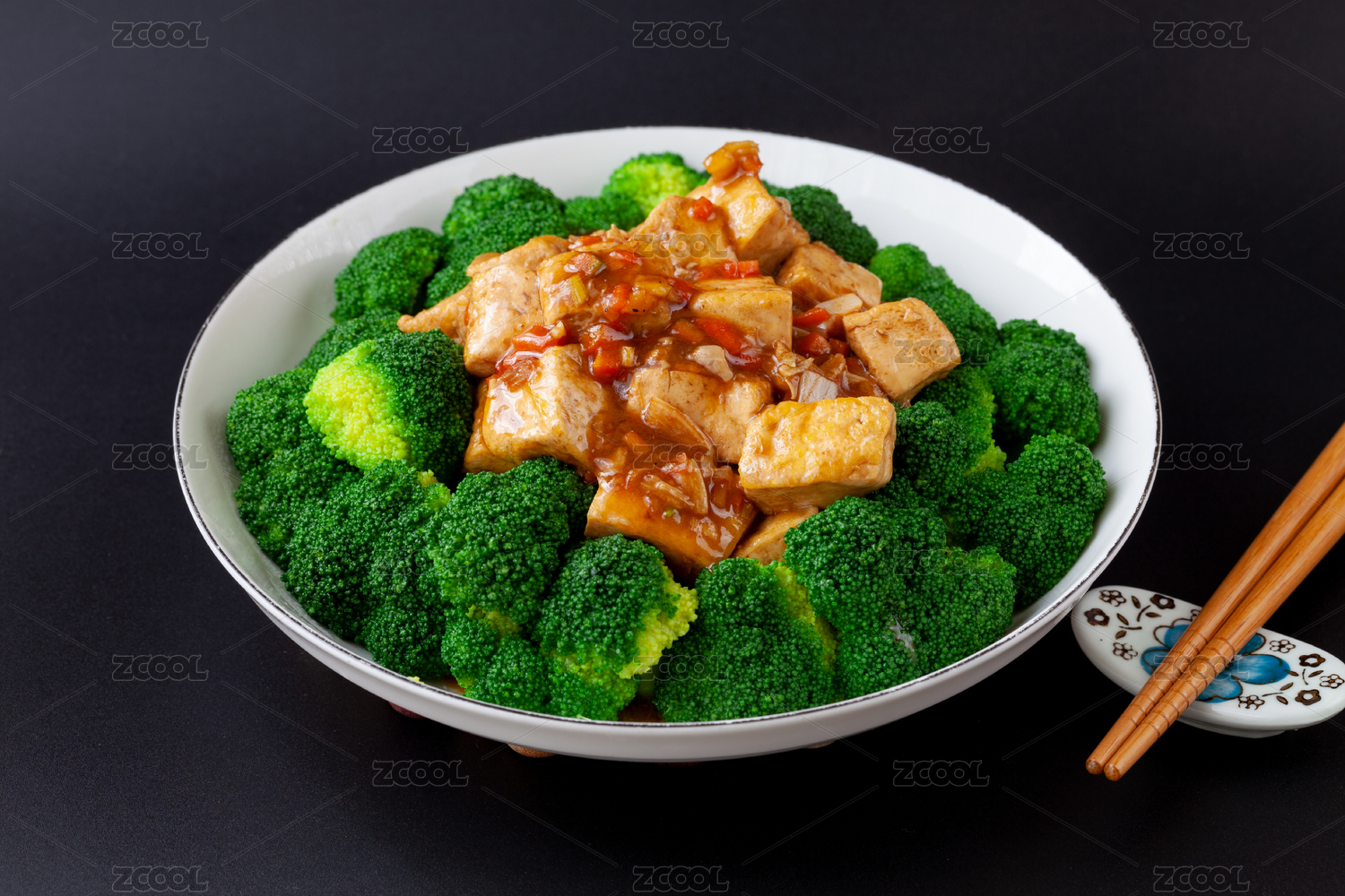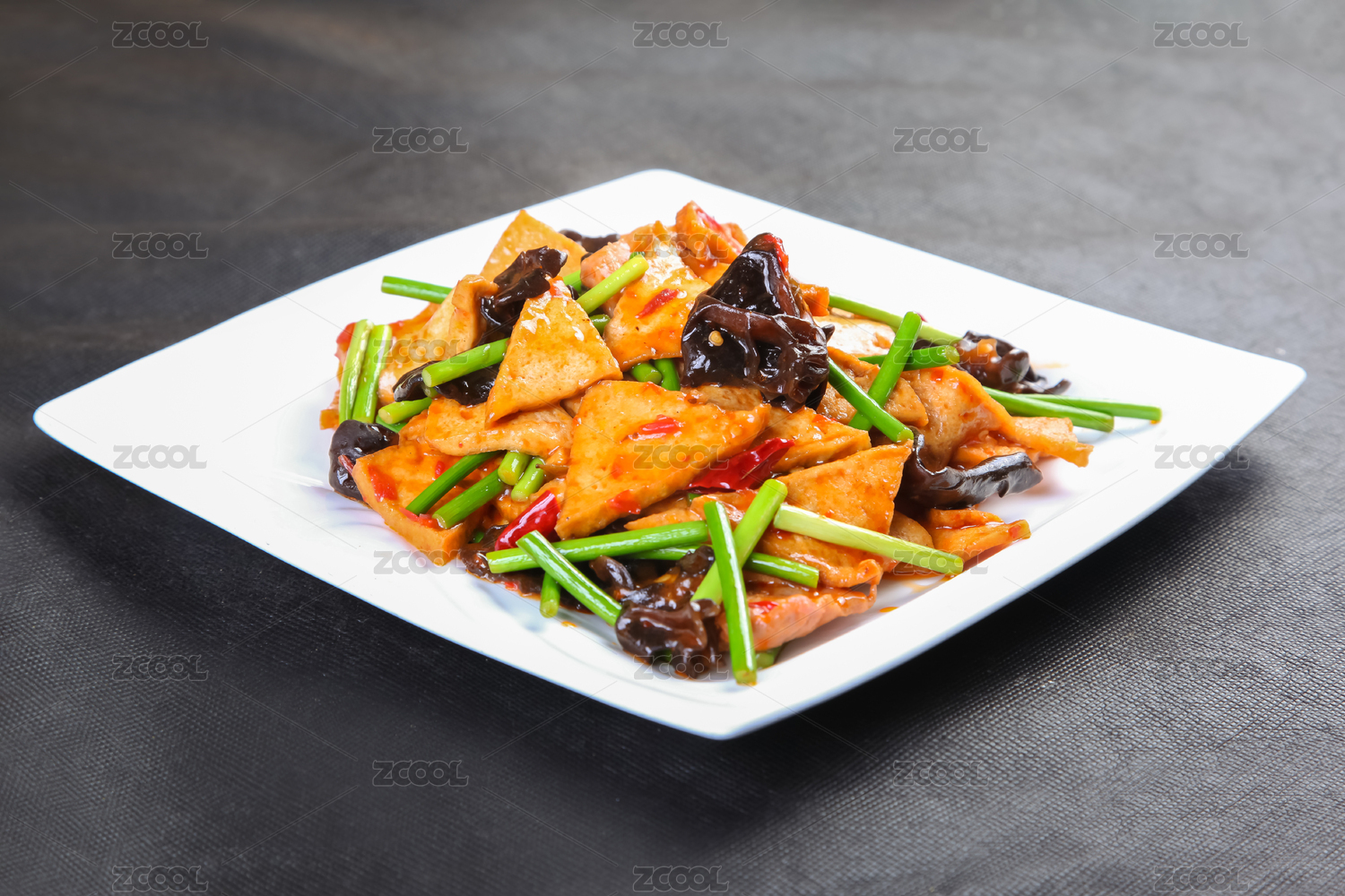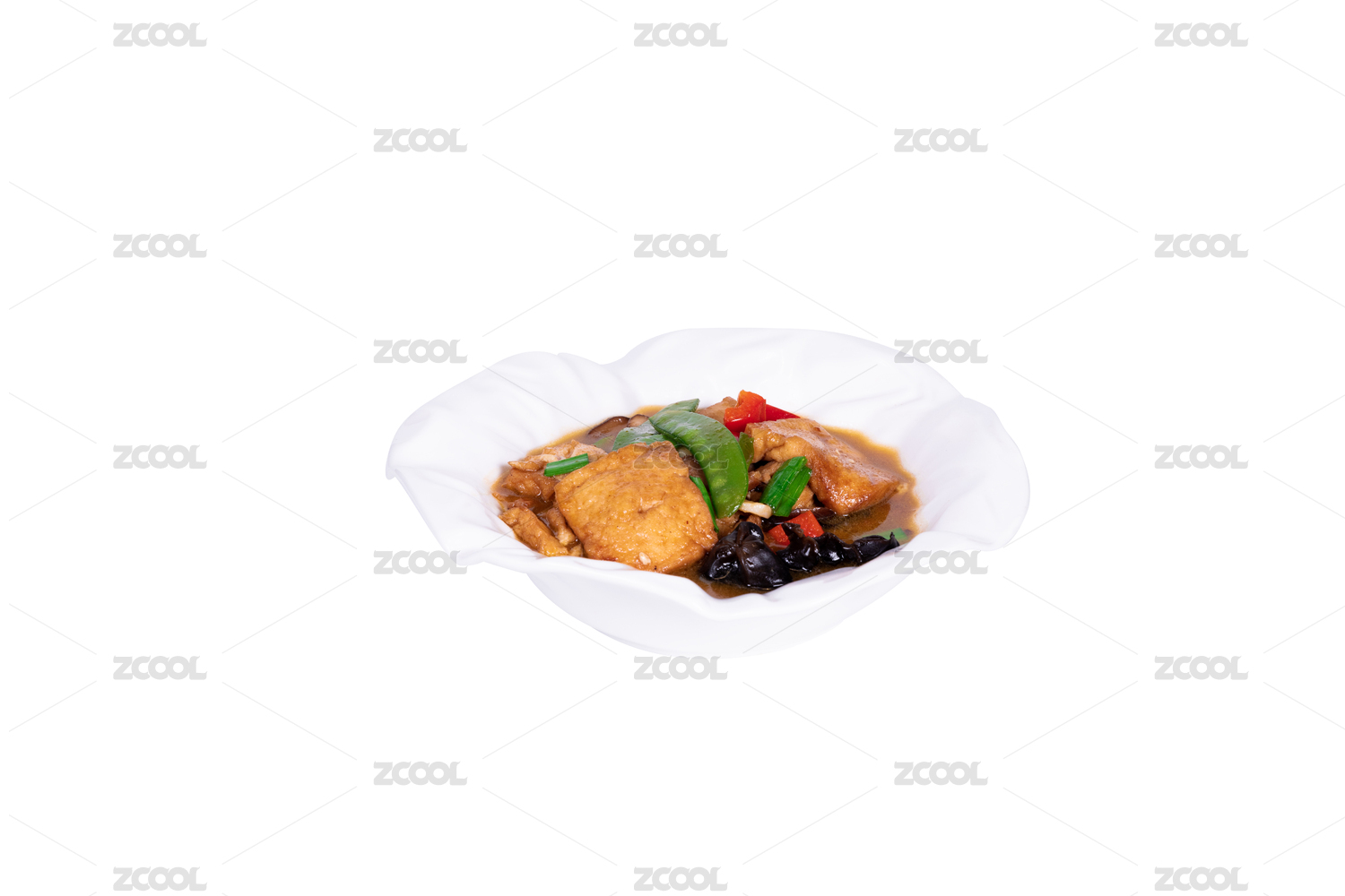 中國(guó)傳統(tǒng)菜品家常豆腐盛放在瓷碗中