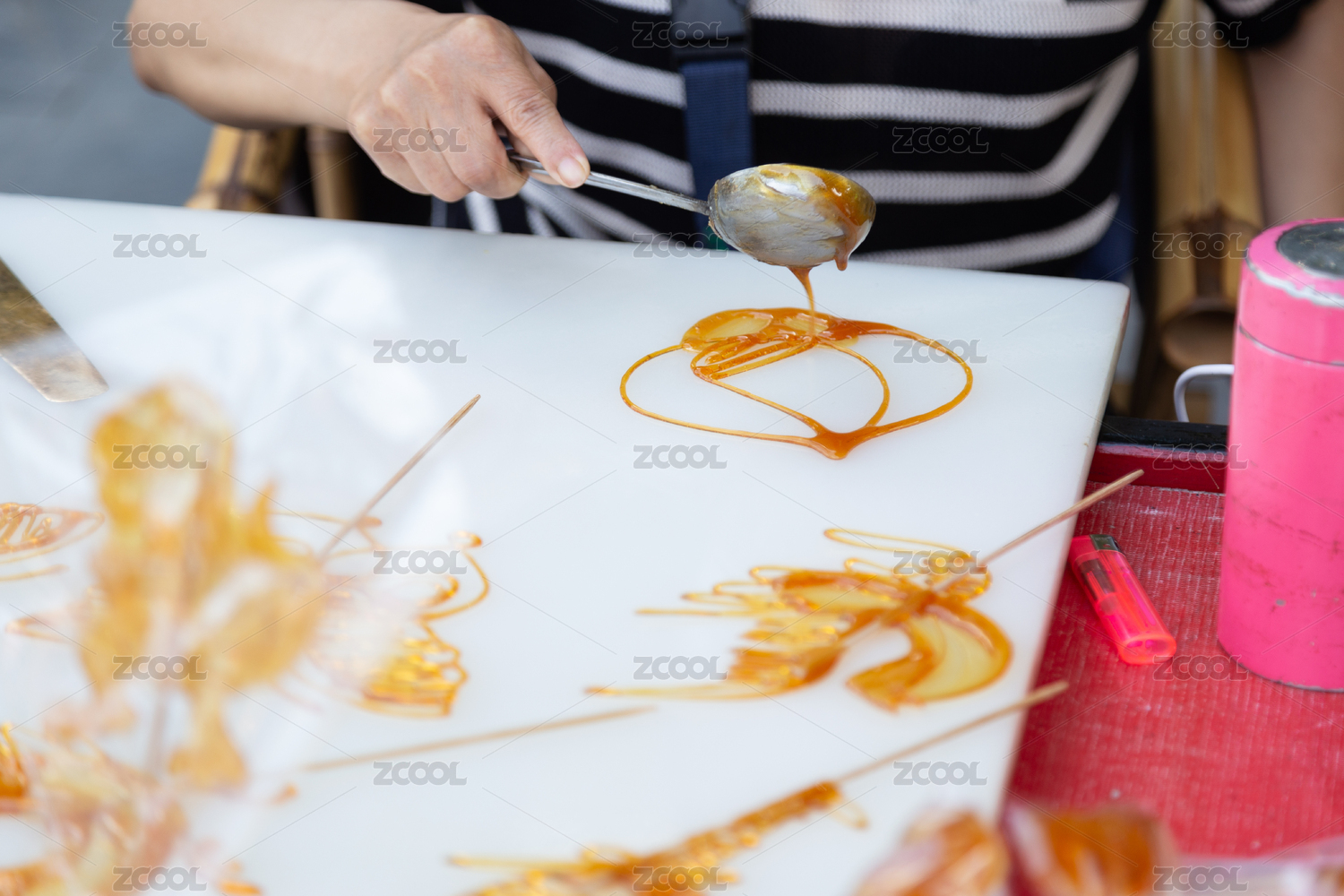 正在制作的中國傳統(tǒng)民間手工藝糖畫