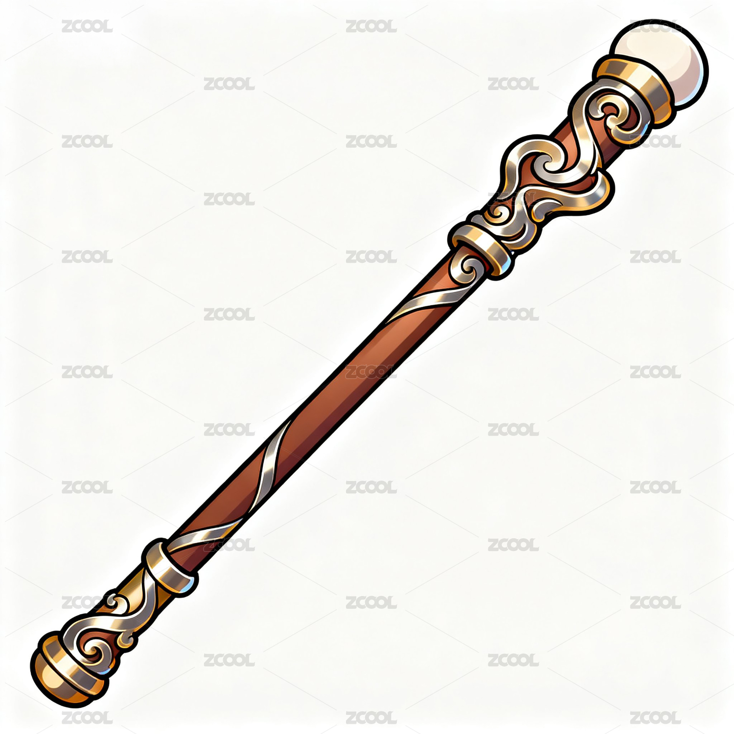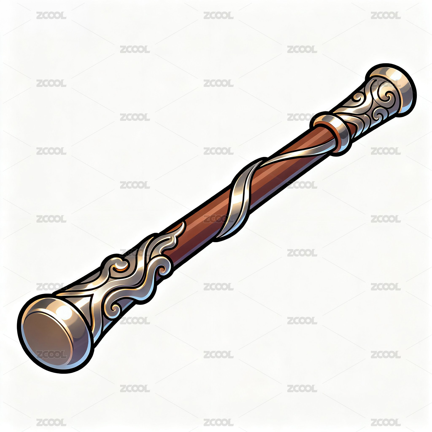 紅木銀紋法杖典雅魔法道具
