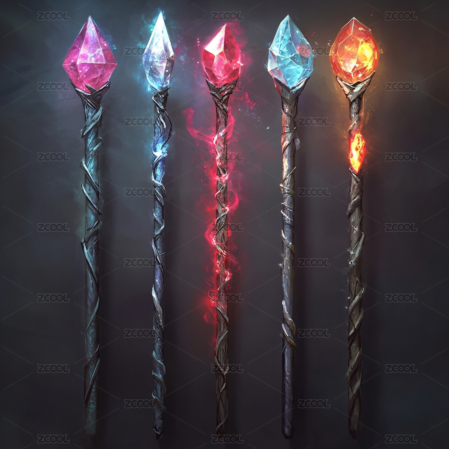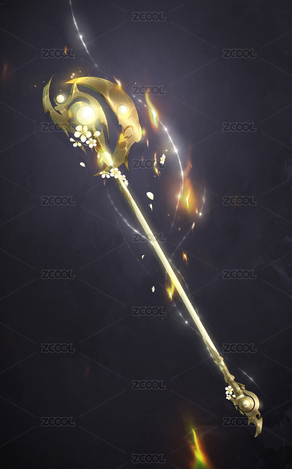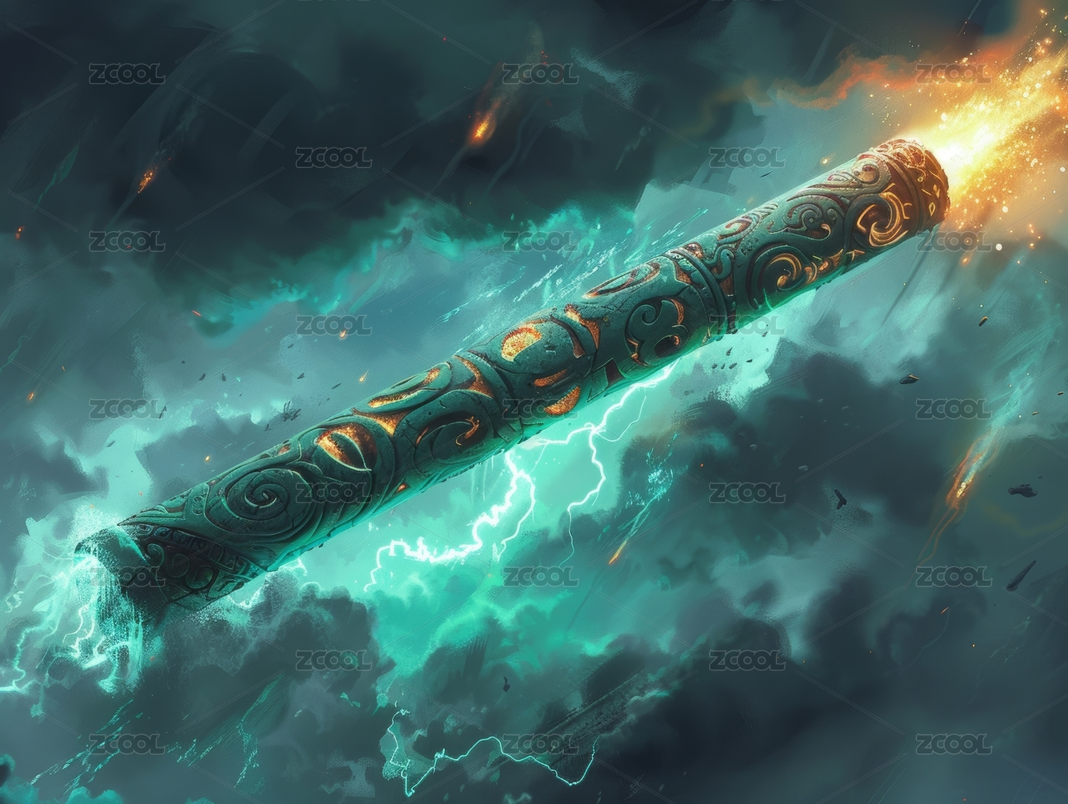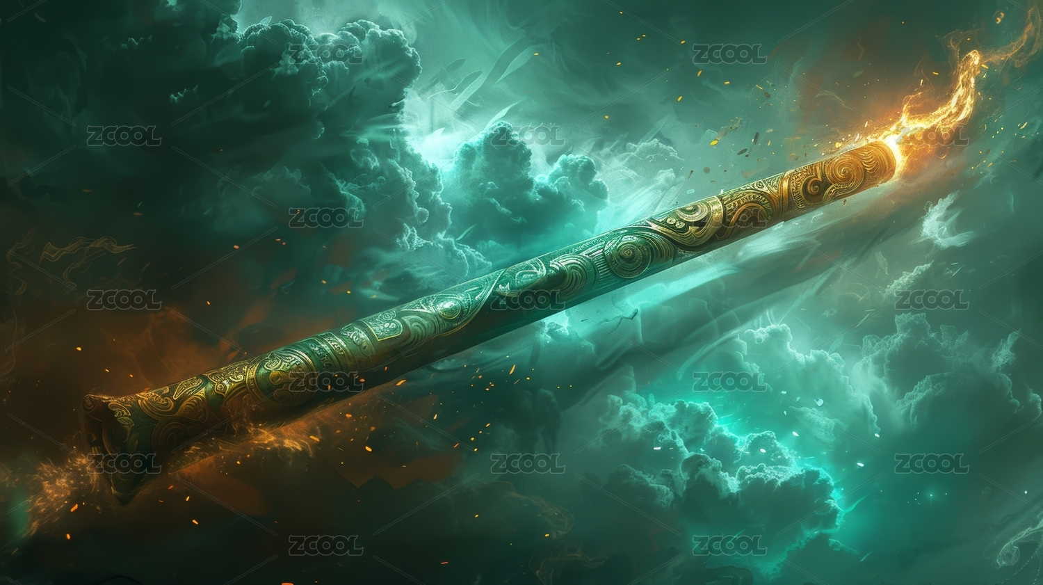 神秘法杖在煙霧與火焰中閃耀
