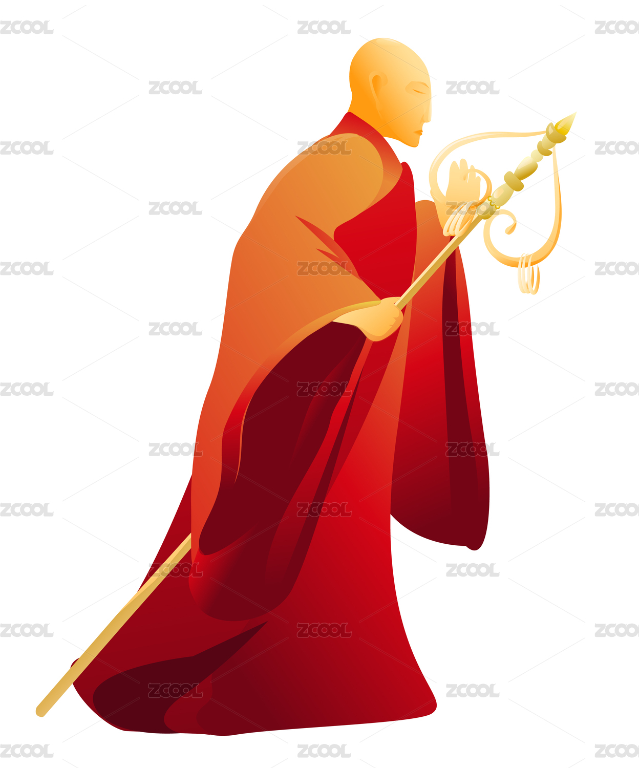 唐朝玄奘和尚拿著法杖的圖片
