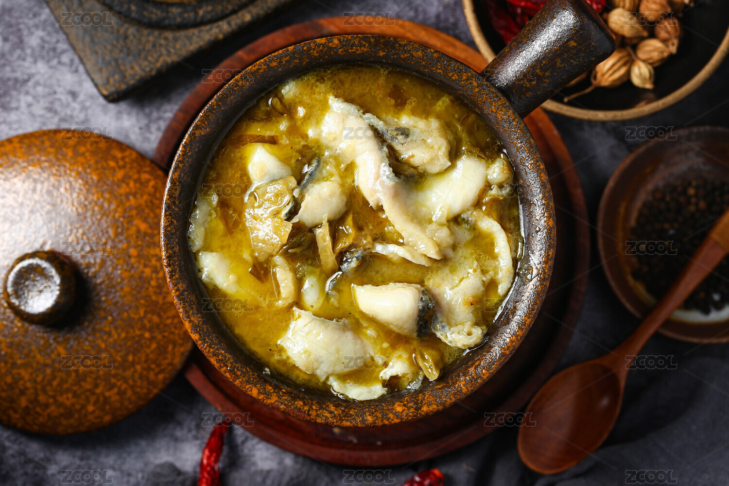 酸菜魚(yú)酸湯魚(yú)放在陶鍋里