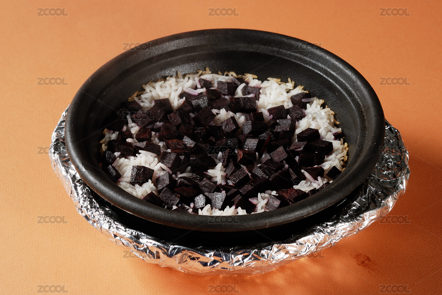 陶鍋煲仔盛放的紫薯飯