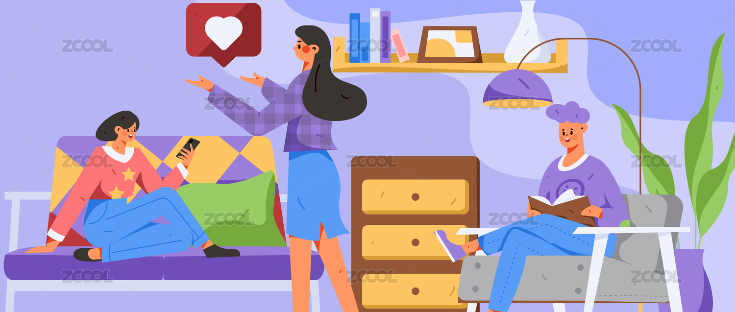 客廳居家休息人物場(chǎng)景扁平矢量概念運(yùn)營(yíng)插畫
