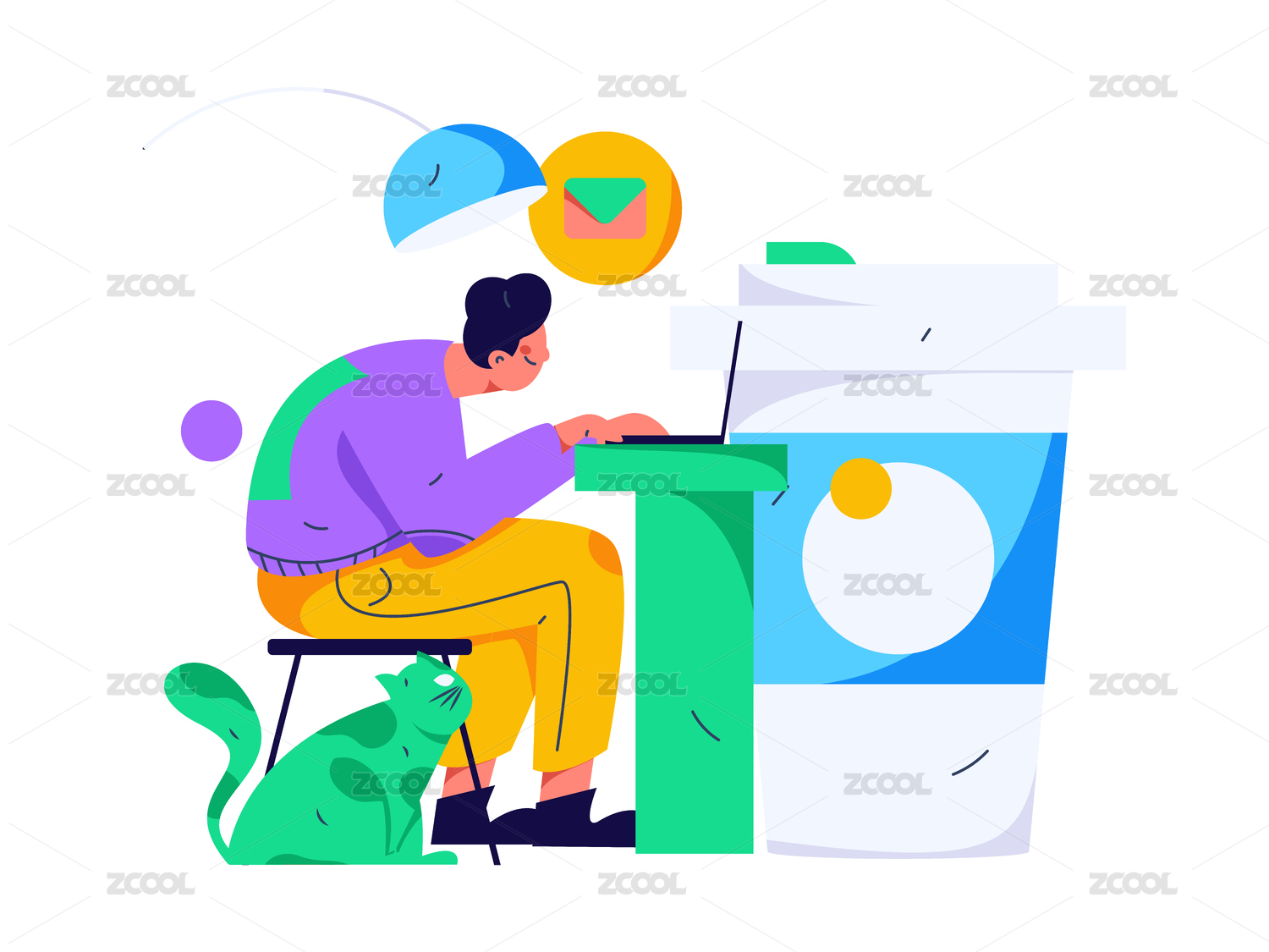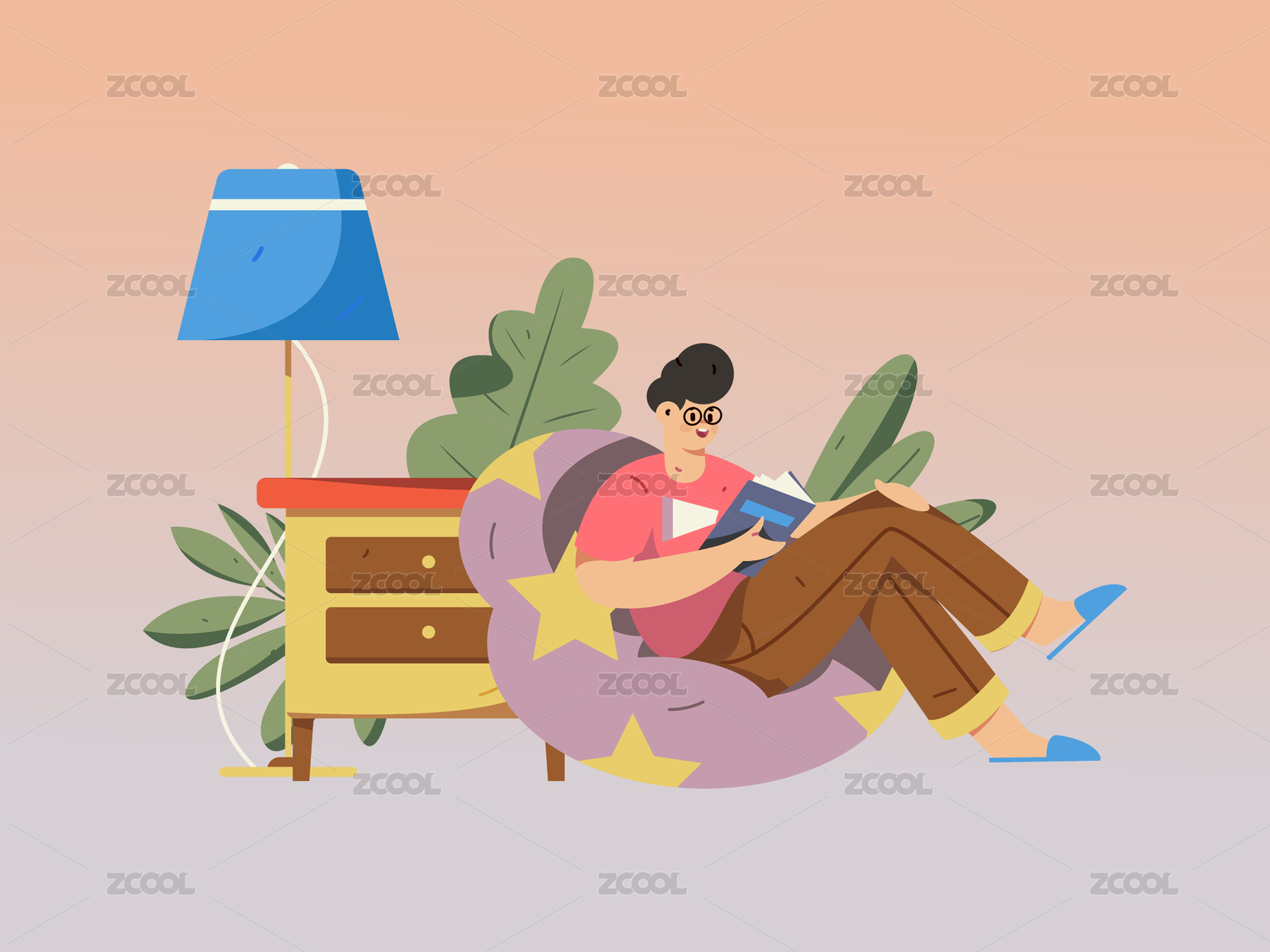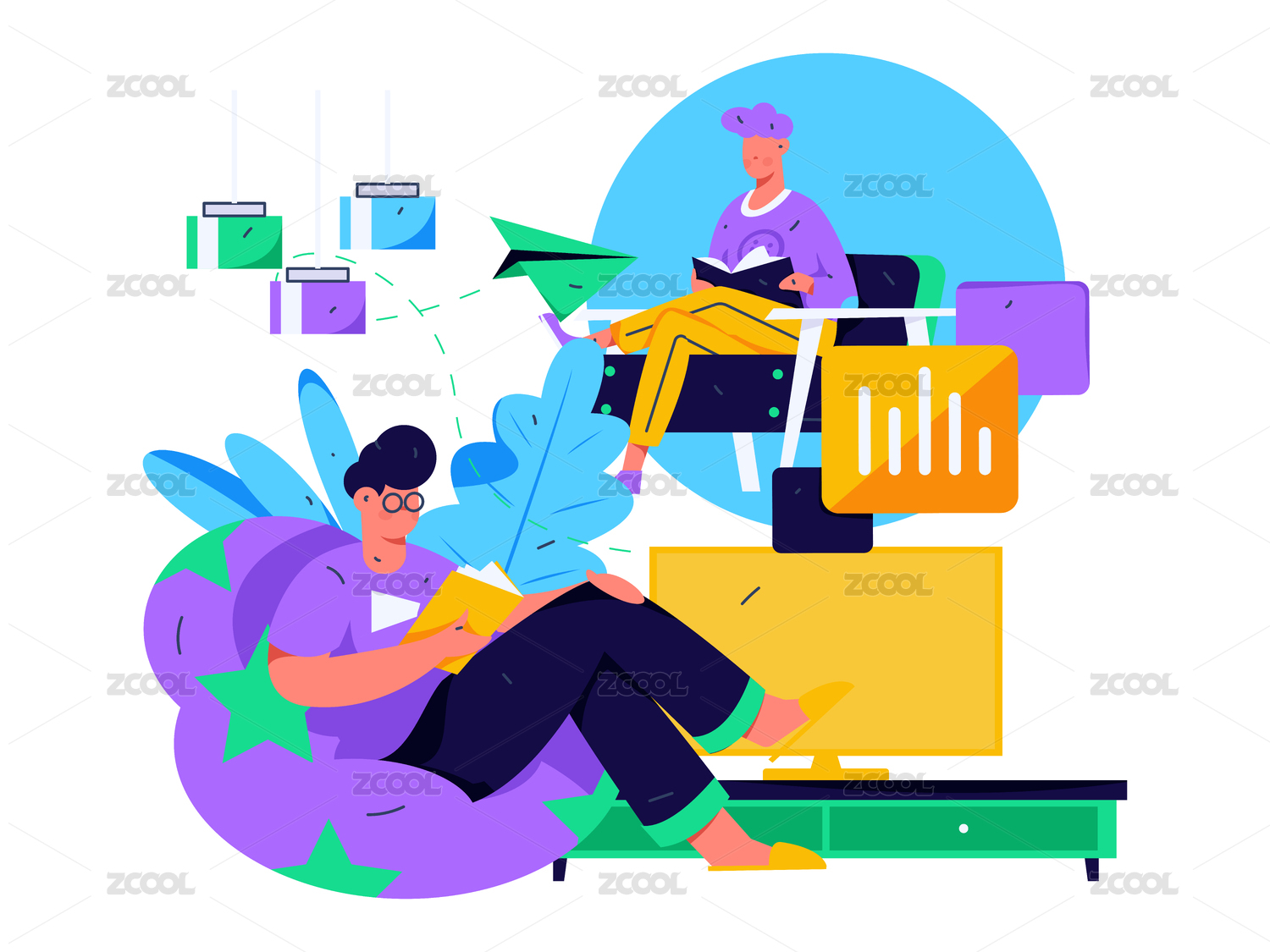 居家室內(nèi)人物場(chǎng)景扁平矢量概念運(yùn)營(yíng)手繪插畫