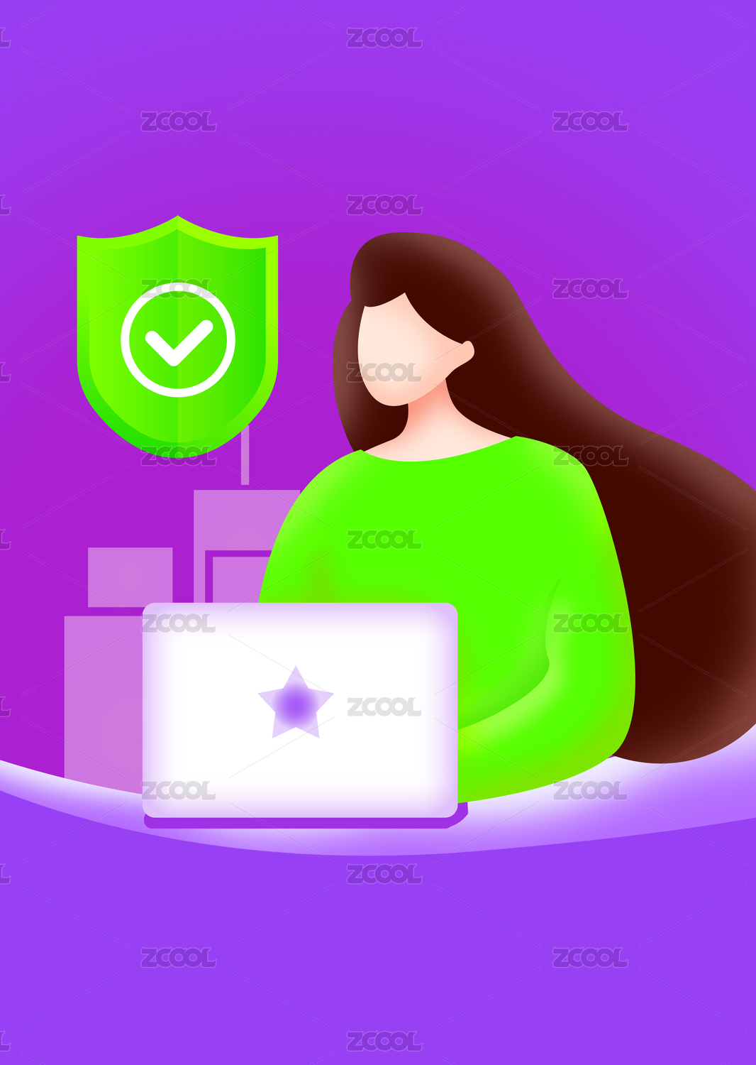 電腦線上賬戶安全保障筆記本辦公插畫圖