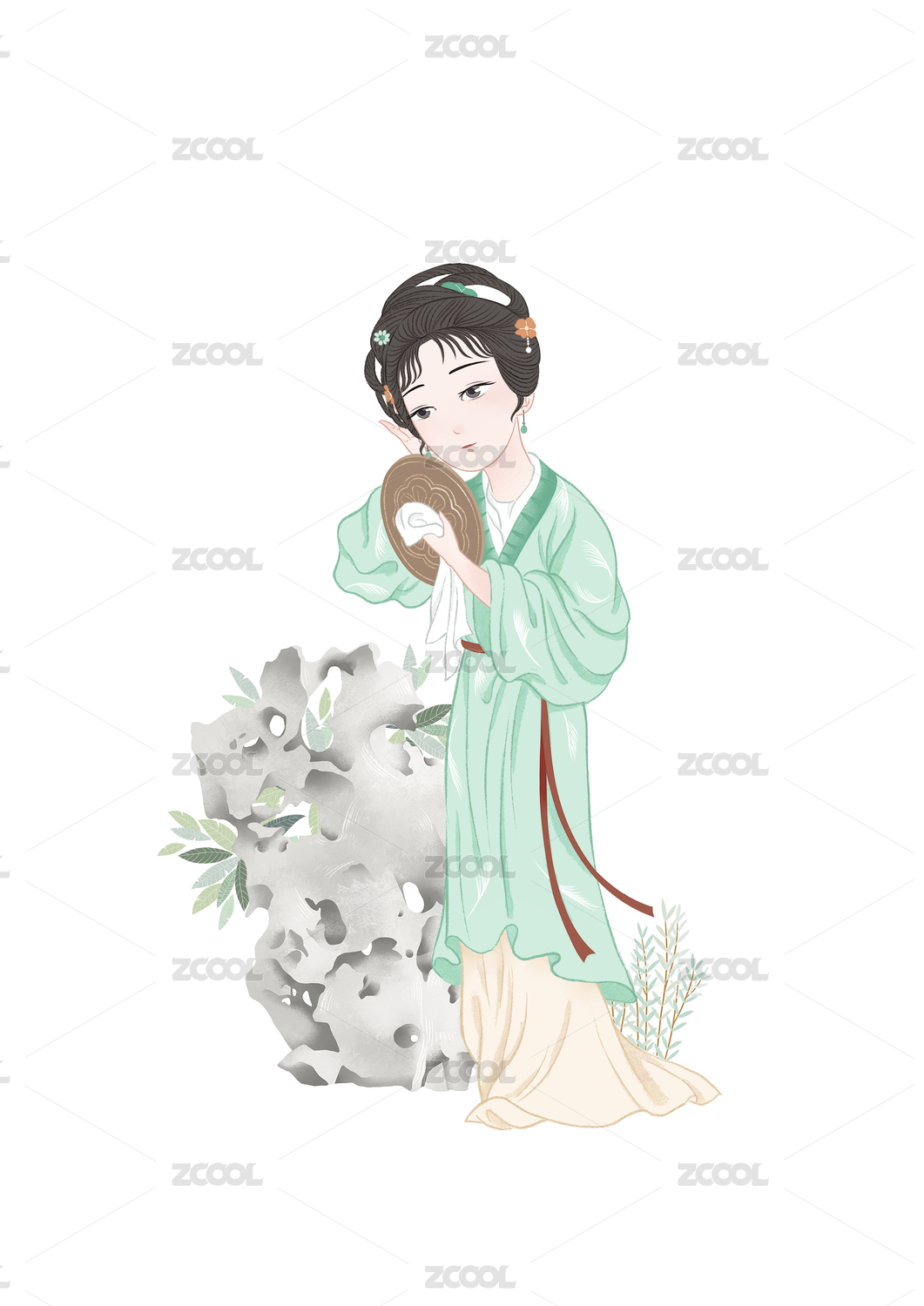 紅樓夢(mèng)薛寶釵拿著扇子在撲蝴蝶