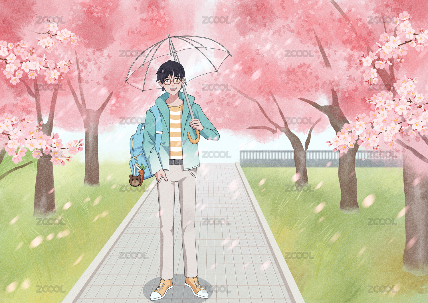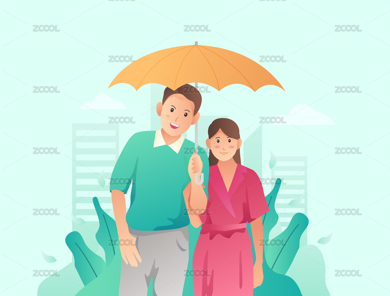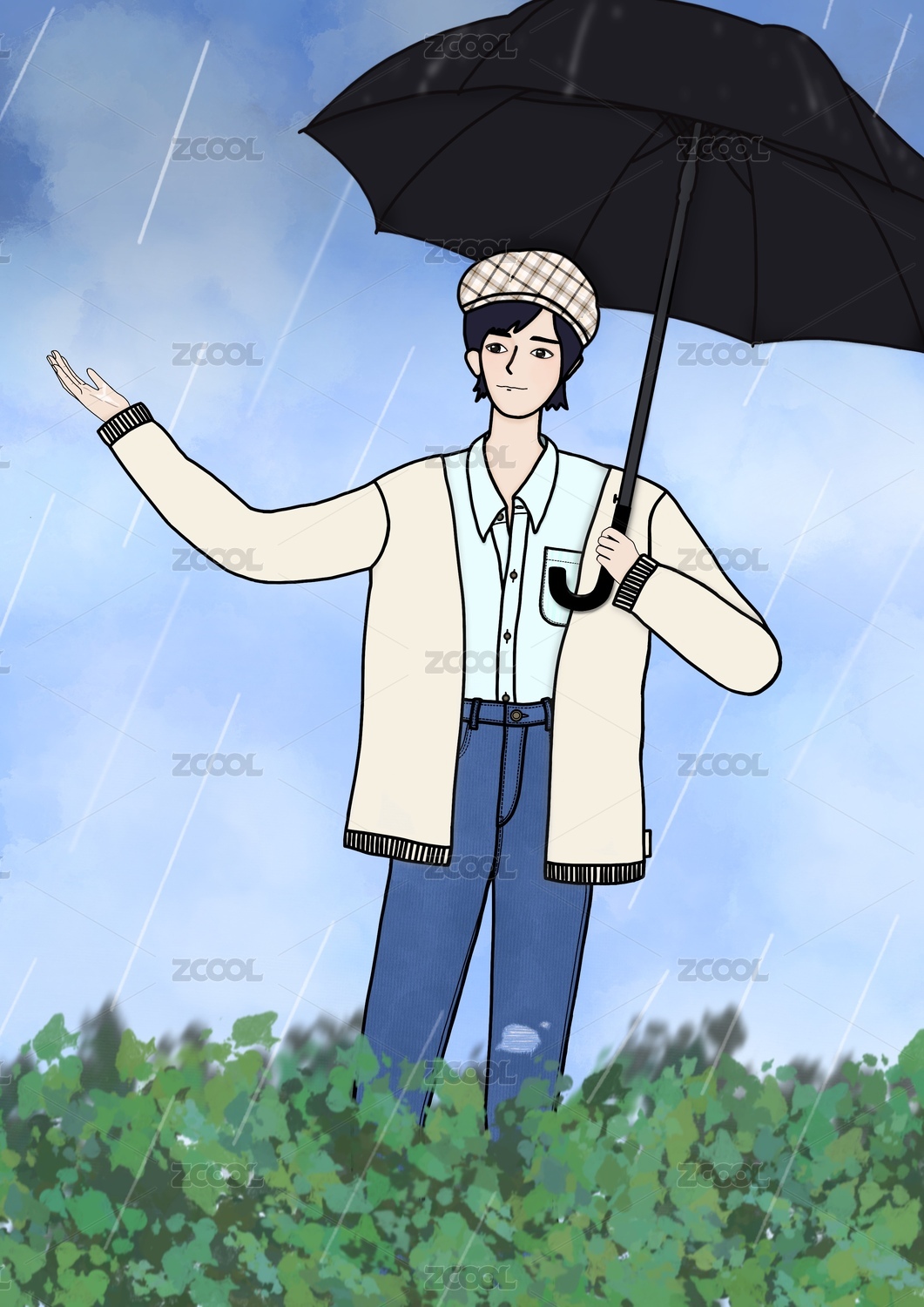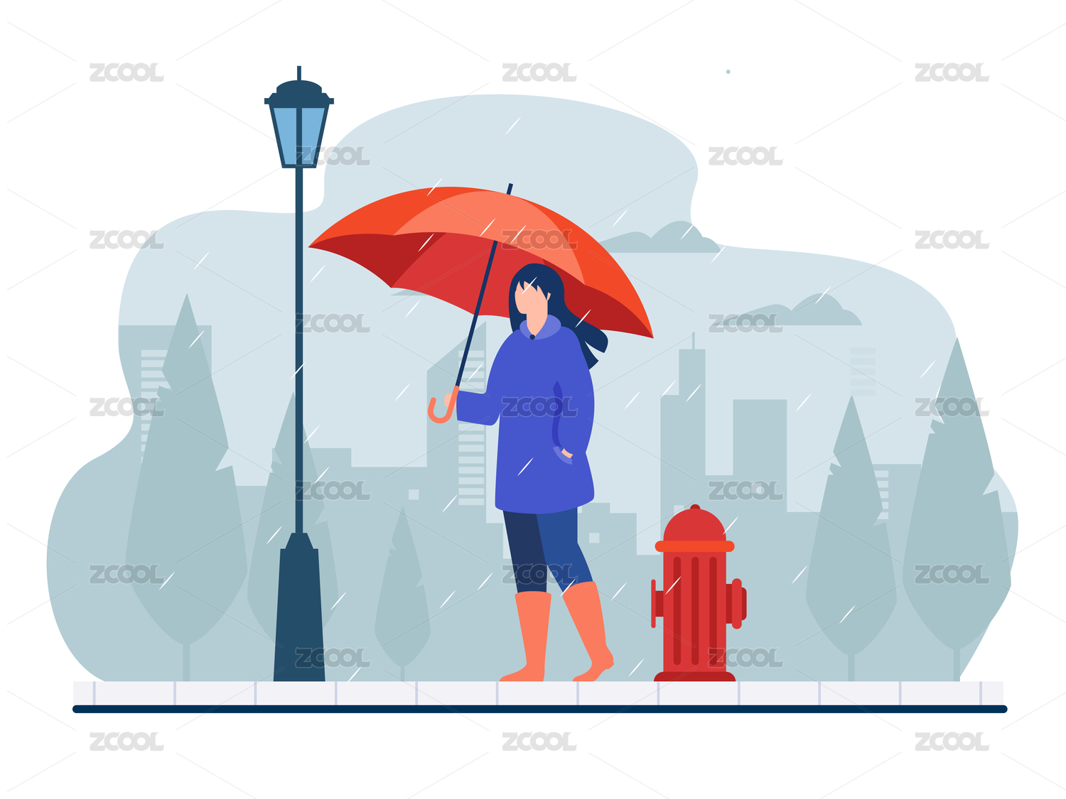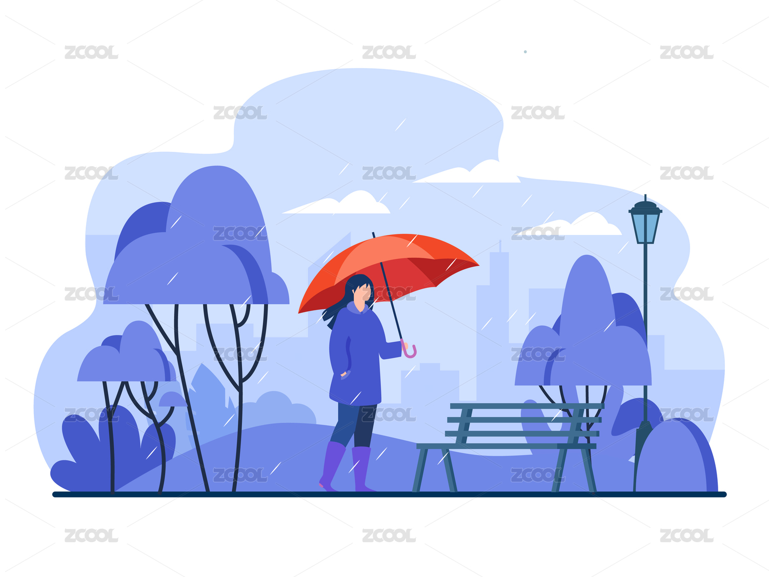 春天下雨春雨女孩打傘谷雨雨水節(jié)氣插畫