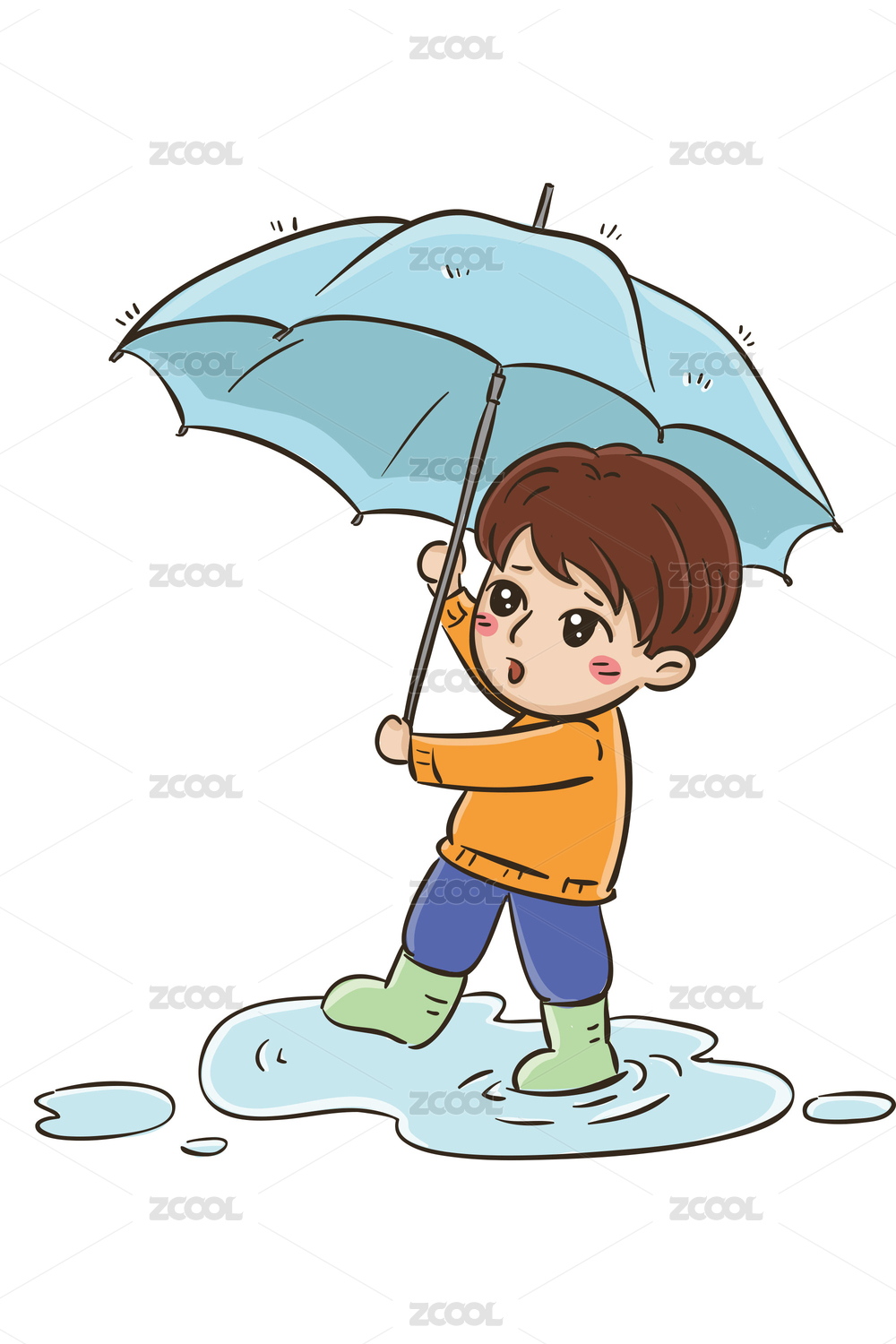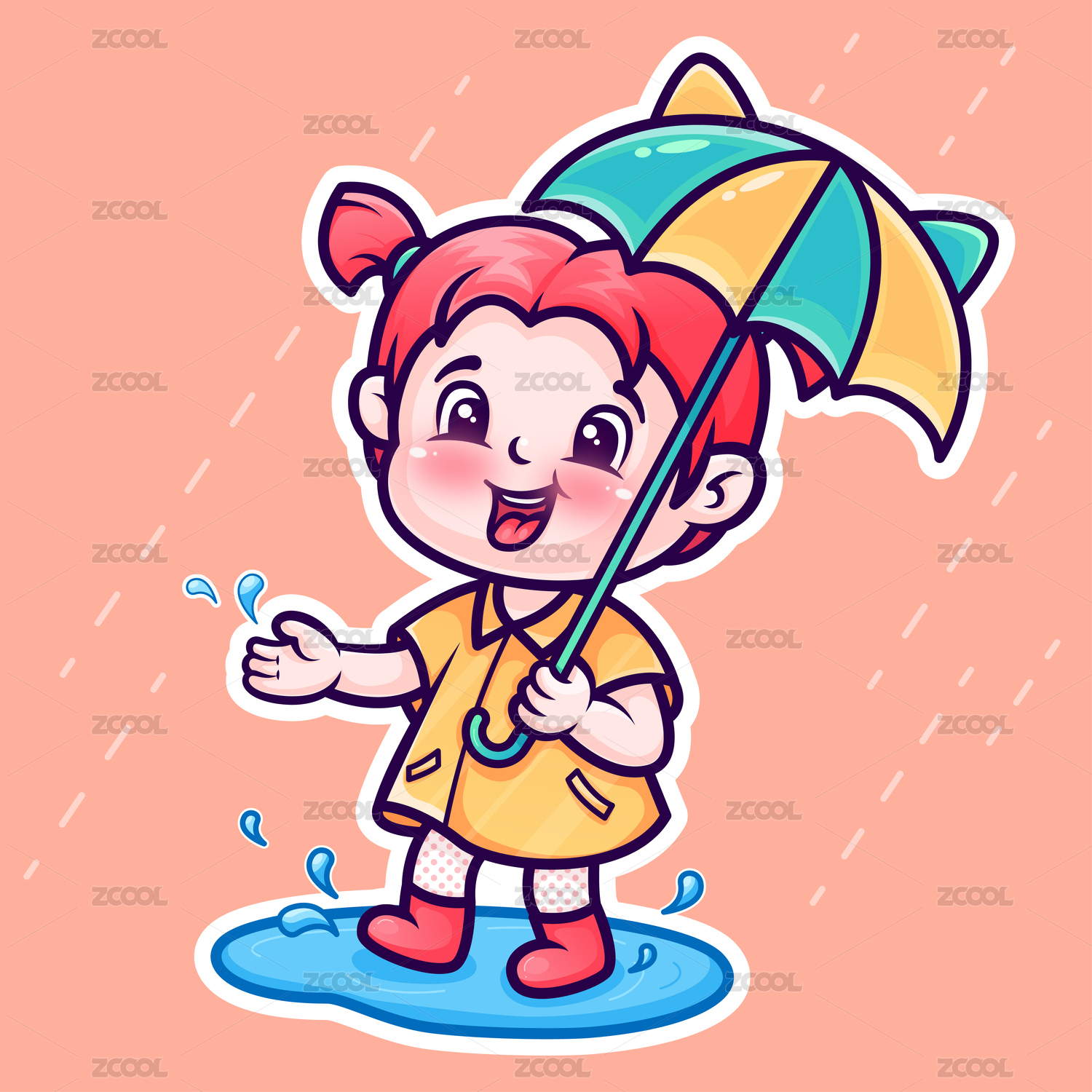 兒童節(jié) 可愛小女孩雨中打傘踩水