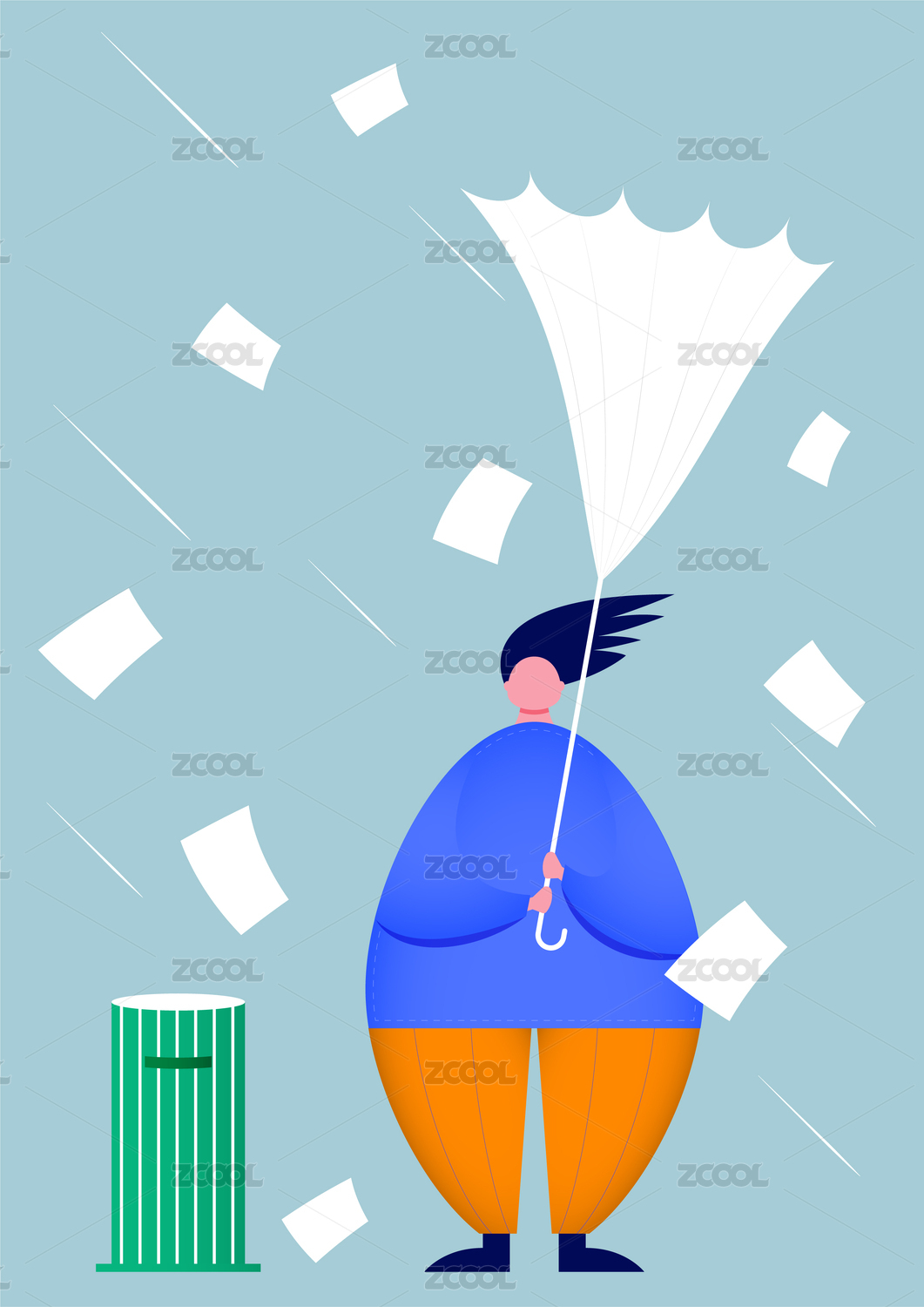 插畫冬天寒冷女孩打傘路積雪郵寄寫信樹枝