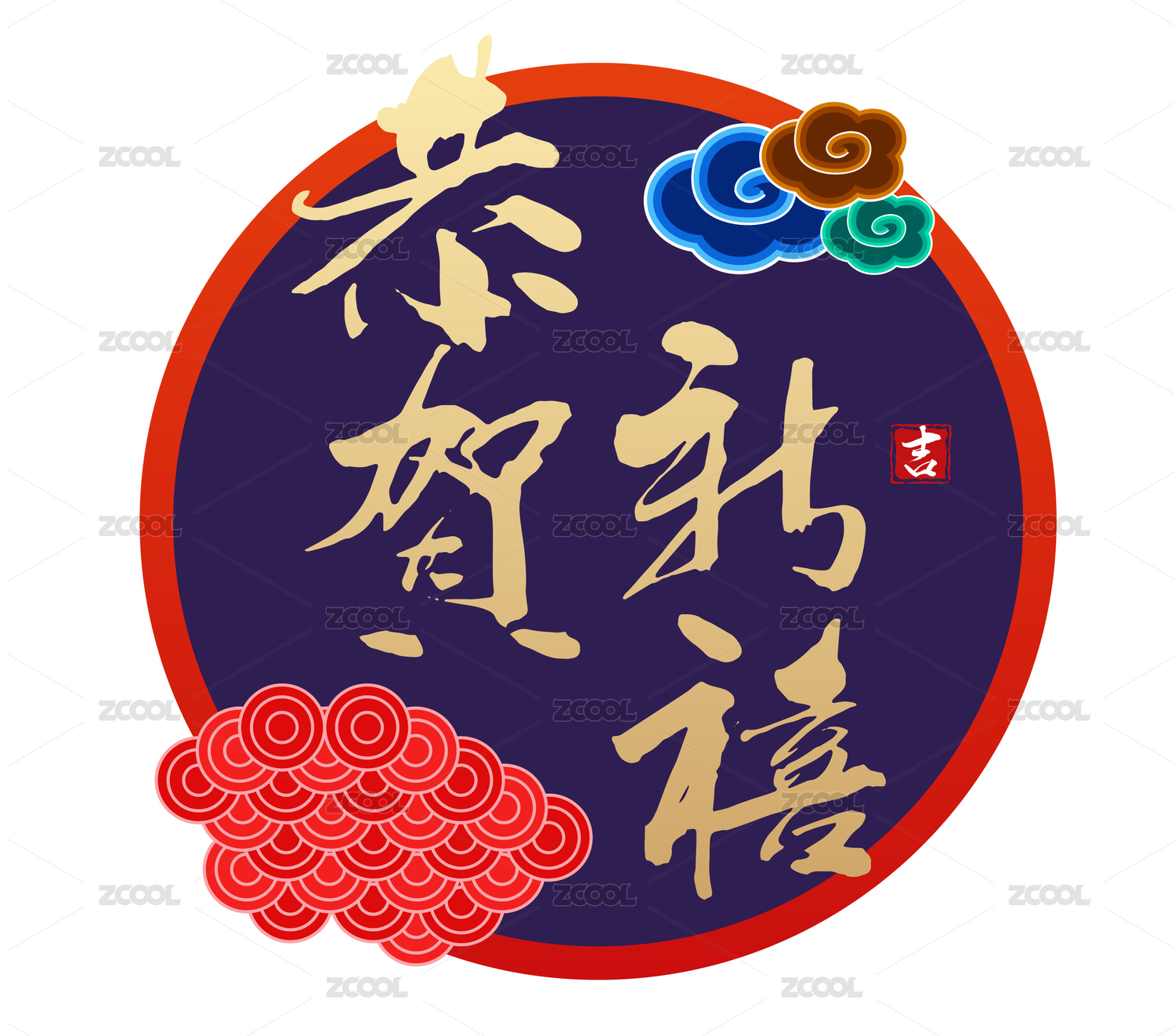 中國書法字體恭賀新禧初十啟市
