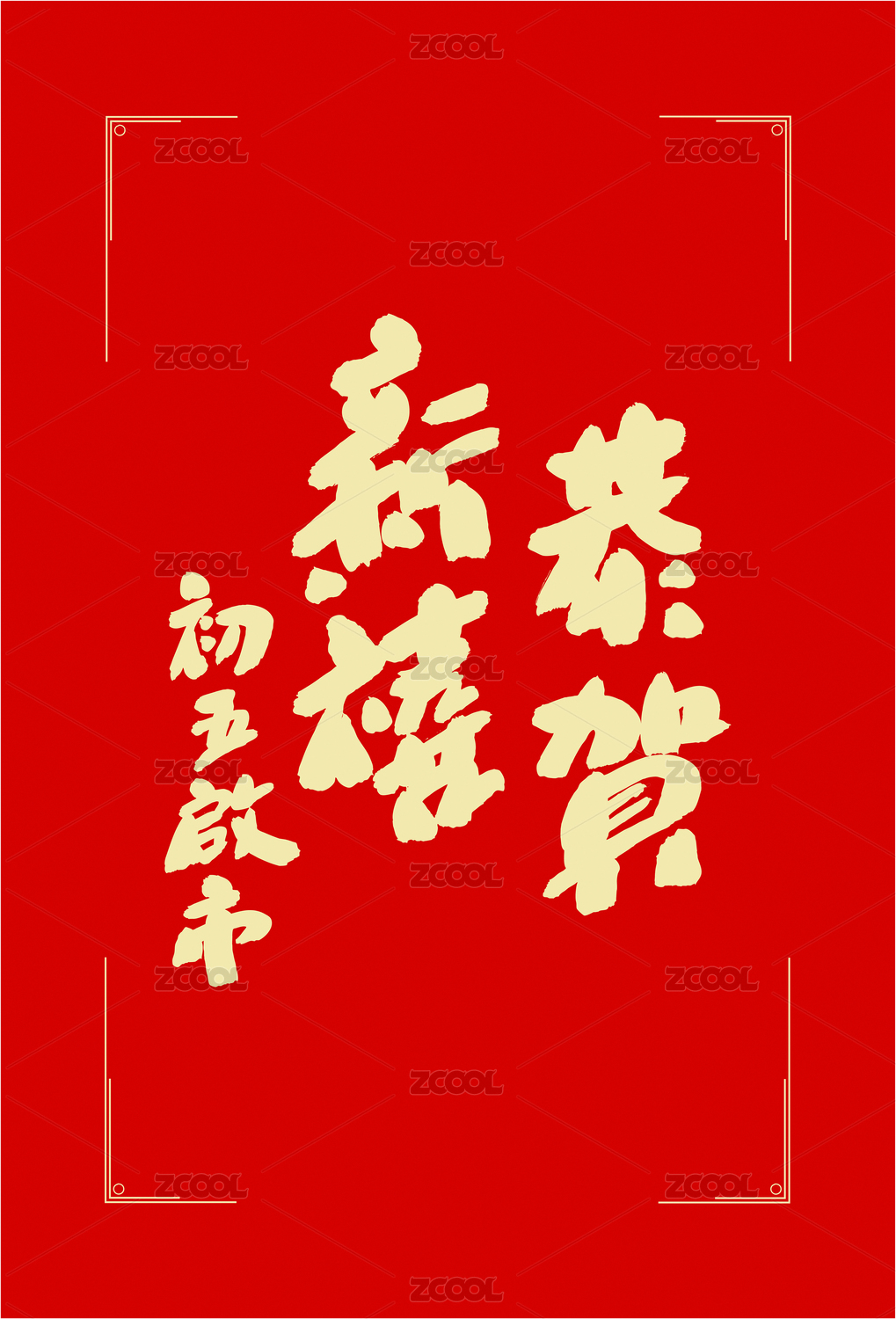 中國書法字體恭賀新禧初五啟市