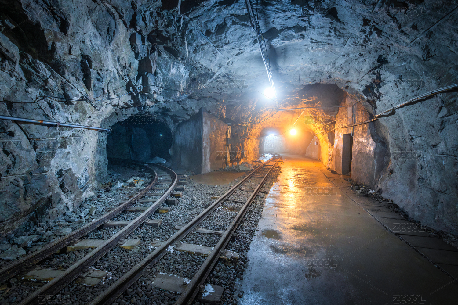 礦洞深處的鐵軌與燈光 黃石國家礦山公園