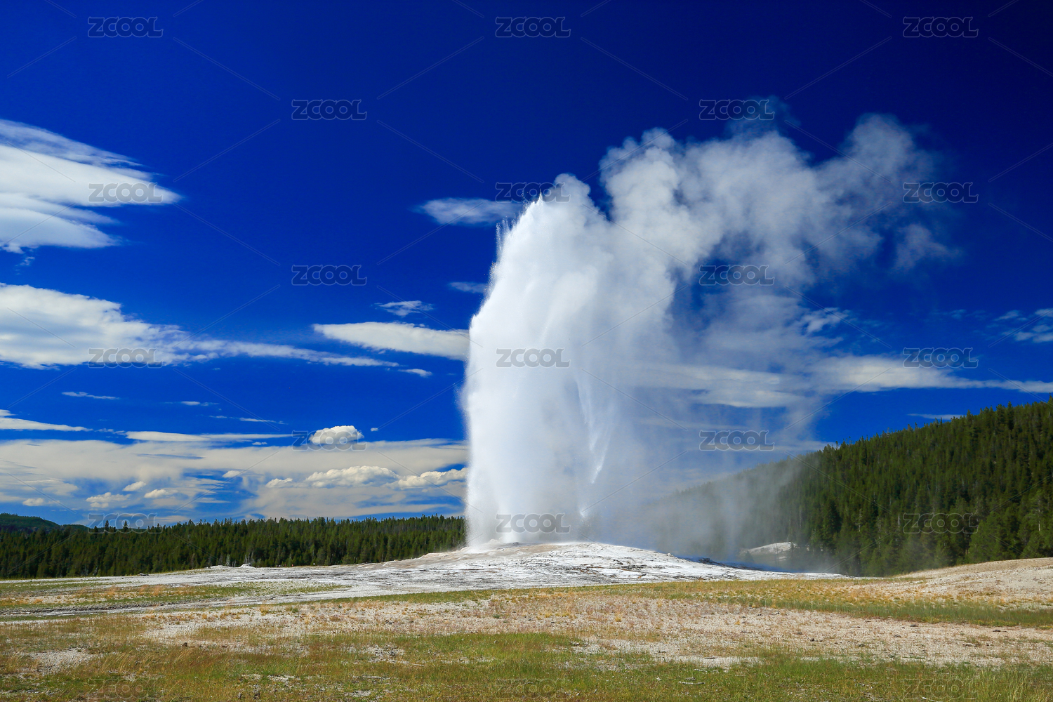美國黃石國家公園冒著蒸汽的藍(lán)色熱泉