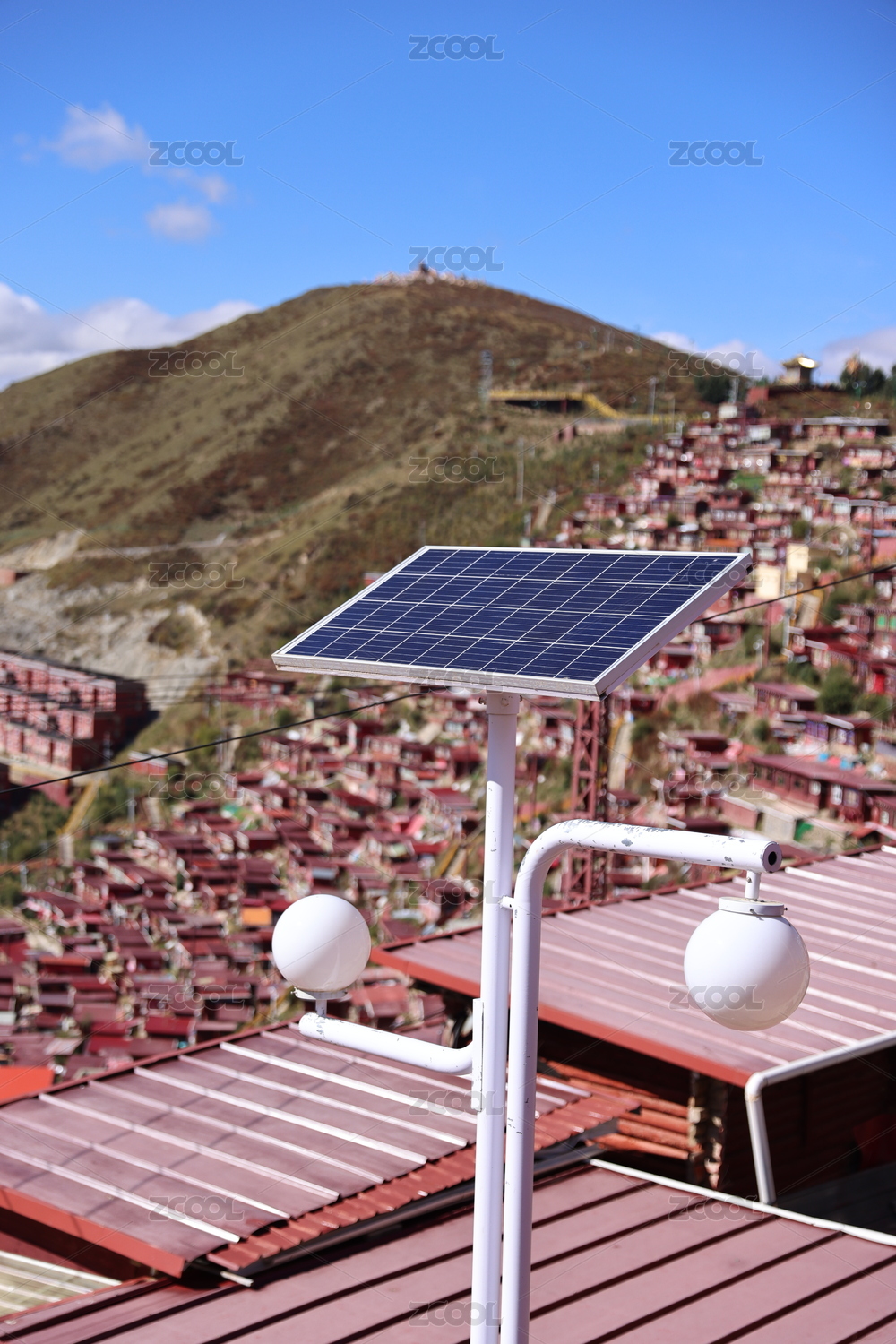 色達(dá)五明佛學(xué)院的光伏板太陽能路燈