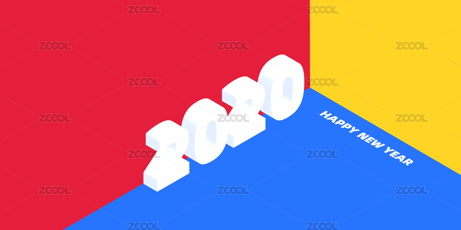 2020年新年紅黃藍(lán)三維立體創(chuàng)意背景