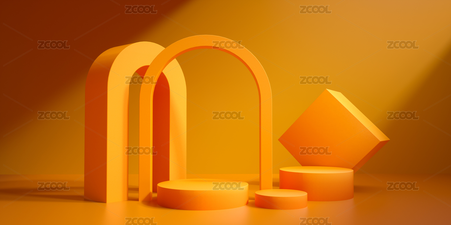 3D淡黃色圓形主題產(chǎn)品展臺創(chuàng)意背景