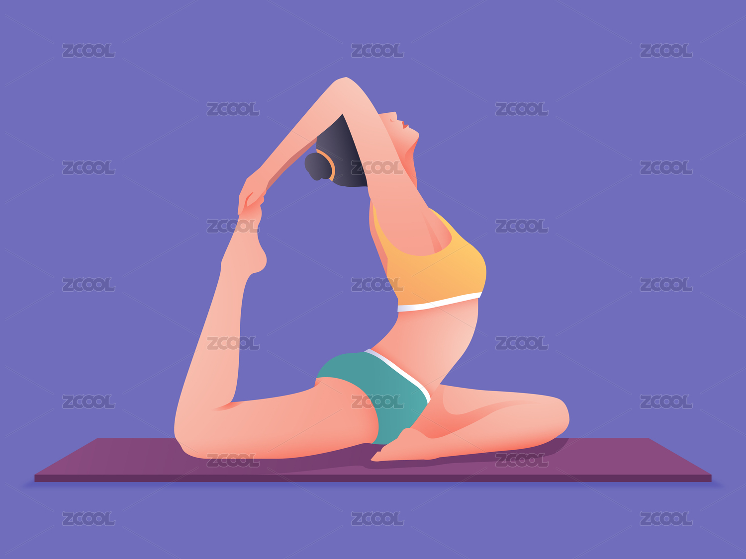 一個(gè)練瑜伽的女生保持身材苗條矢量插畫