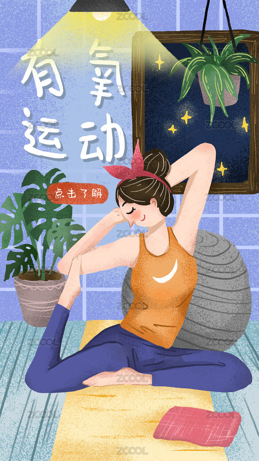 手繪剪影有氧運(yùn)動(dòng)瑜伽普拉提
