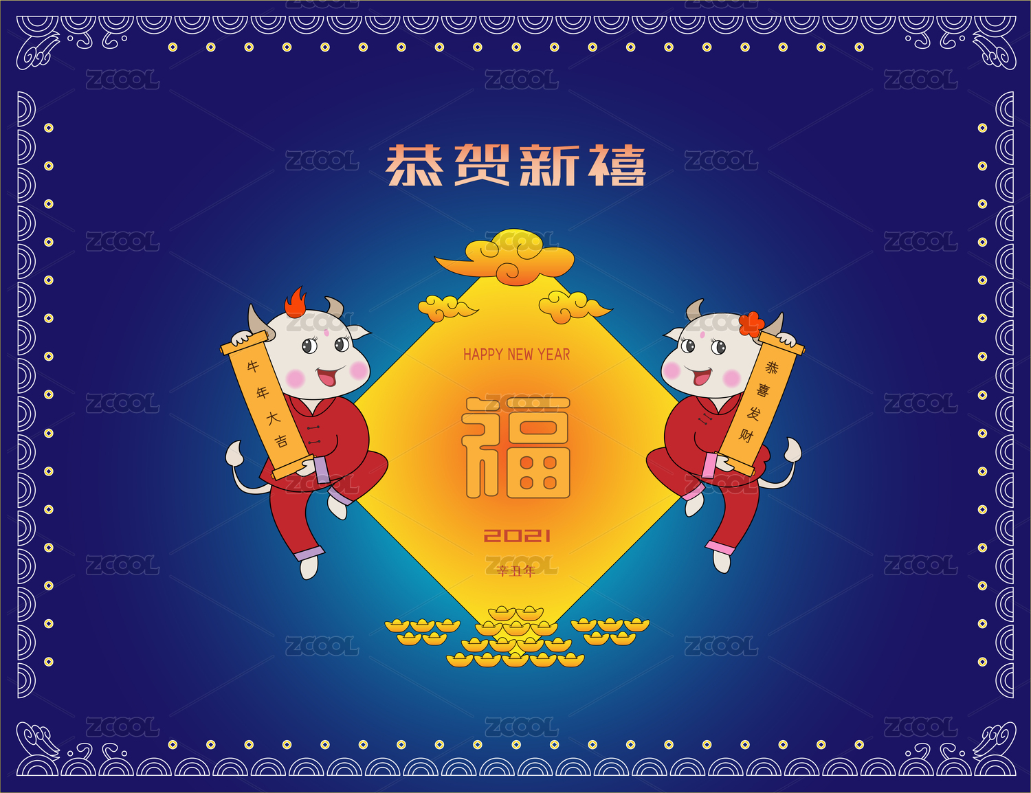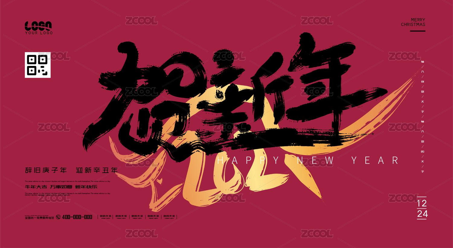 牛年2021春節(jié)新年手寫藝術字賀新年