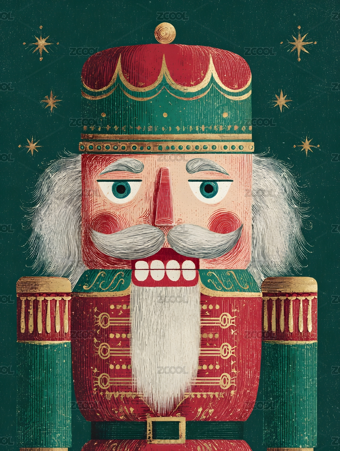 圣誕節(jié)胡桃夾子士兵插畫,綠色復(fù)古風(fēng)格