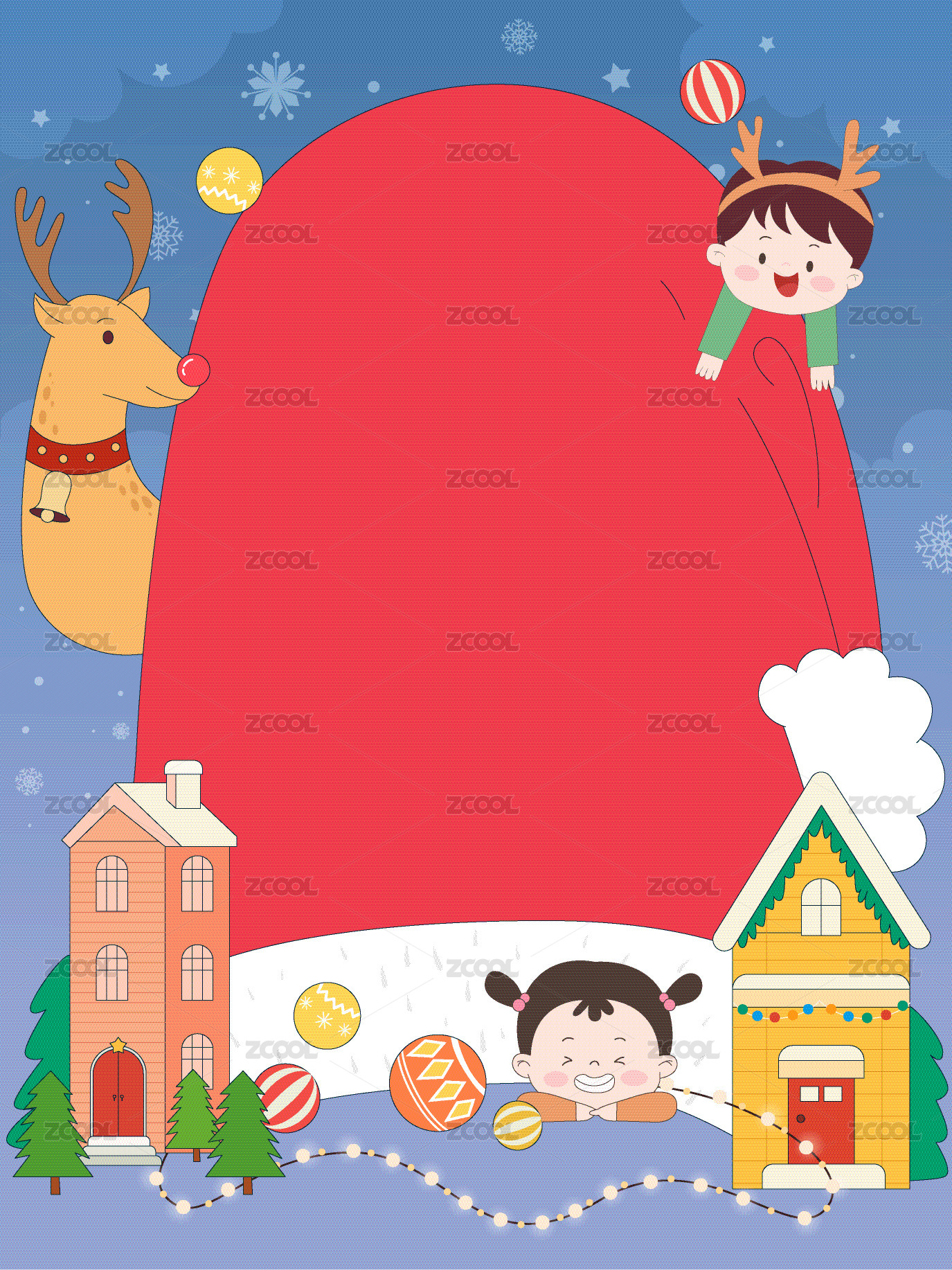 圣誕節(jié)圣誕帽彩色鈴鐺孩子開(kāi)心慶祝節(jié)日插畫(huà)