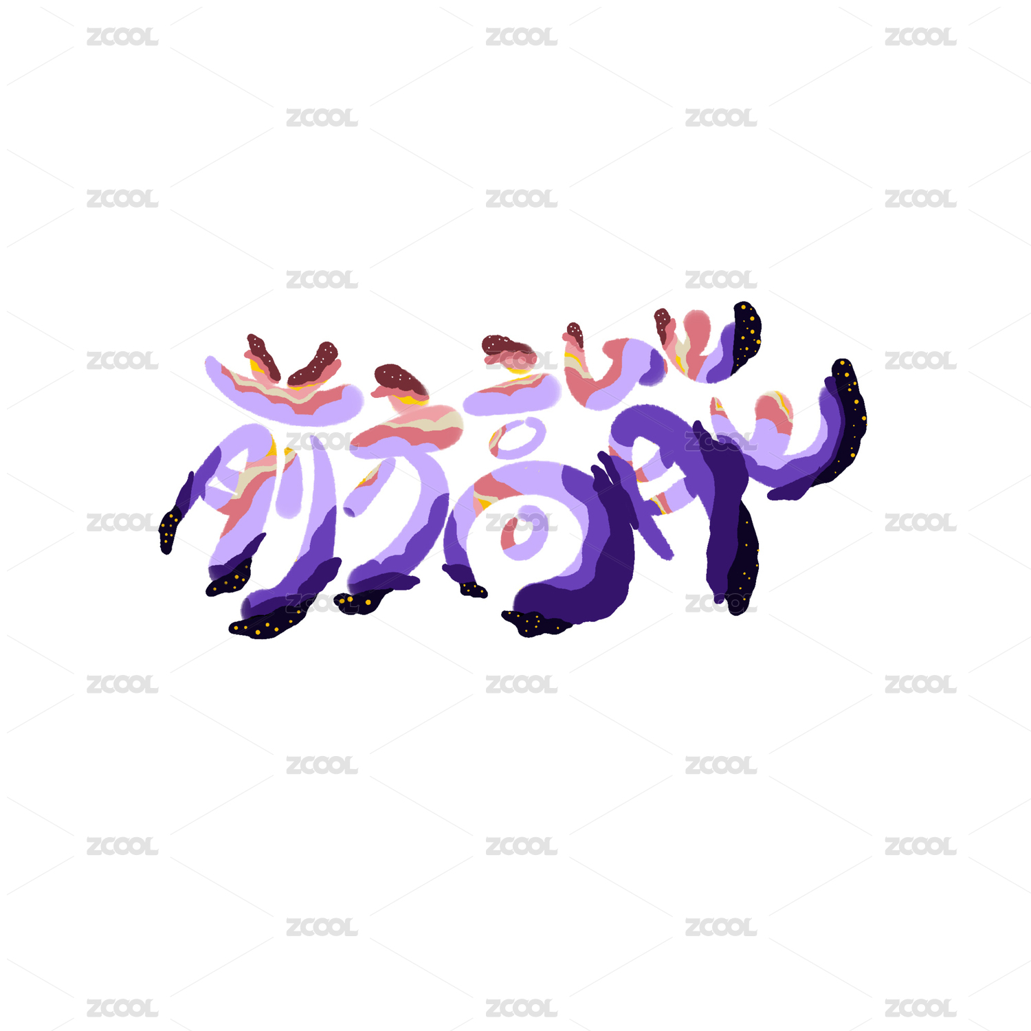 手繪字體設計--前方高能彩色紫色卡通可愛原創(chuàng)綜藝趣繪藝術字