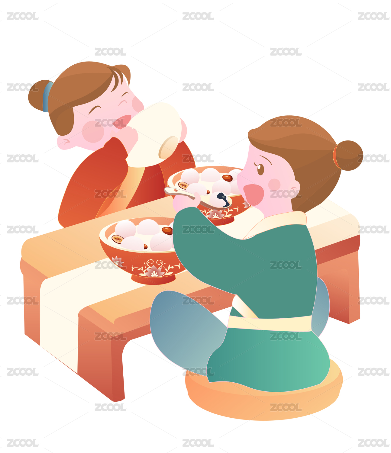 元宵節(jié)一起吃元宵的兩個(gè)古裝人物元素