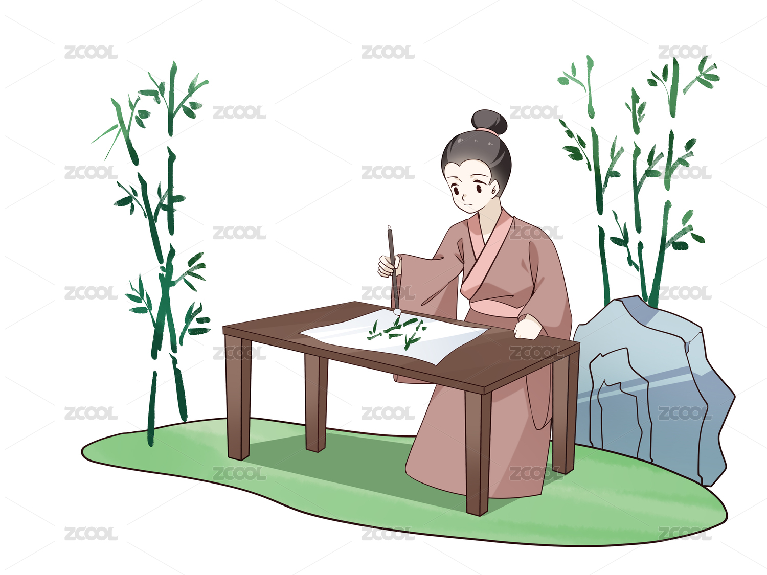 成語(yǔ)胸有成竹古裝人物書畫竹子