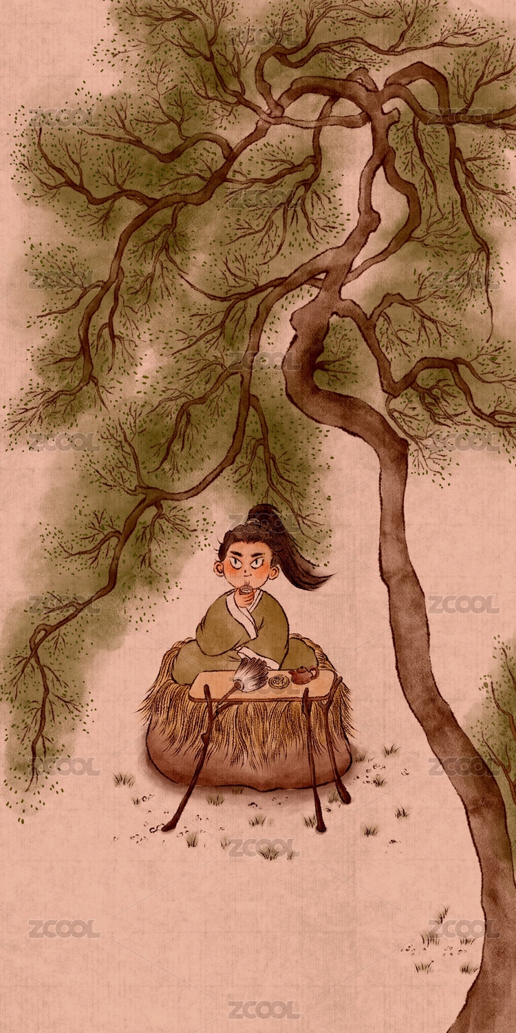 大樹(shù)下喝茶的古裝人物