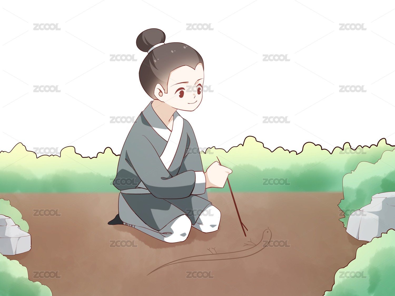 成語(yǔ)古裝人物書生桌子上畫蛇并添足