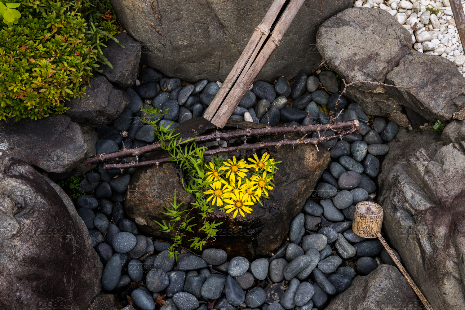 裝飾大吳風(fēng)草的日式和風(fēng)水池