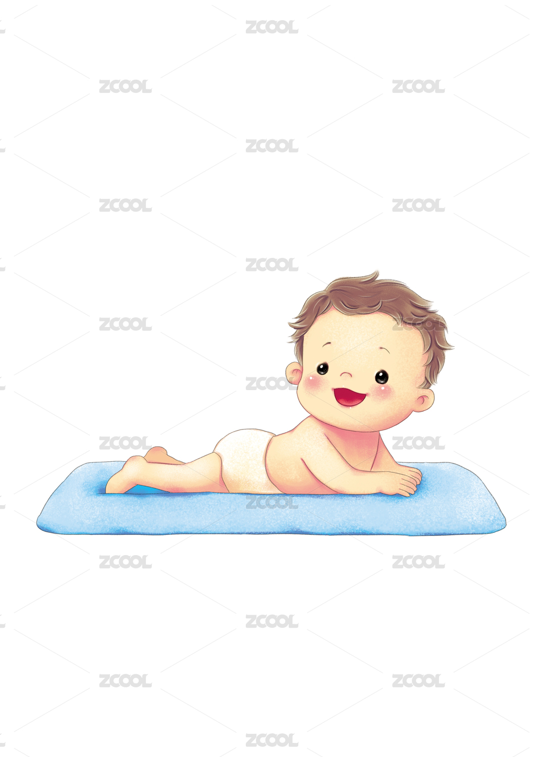 寶寶俯趴在藍色墊子上,手放在胸口以支撐寶寶的頭和胸部