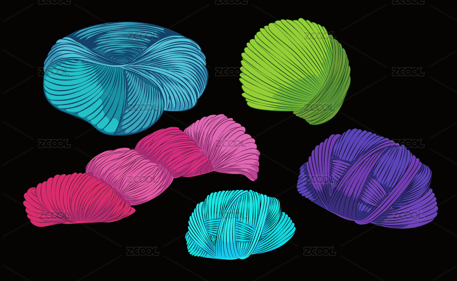黑背景綠色藍(lán)色粉色線團(tuán)