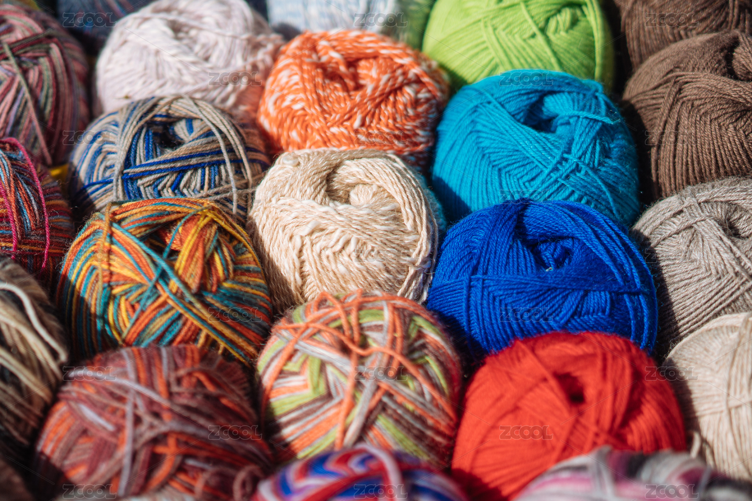 五顏六色的擺放整齊的編織毛線團(tuán)