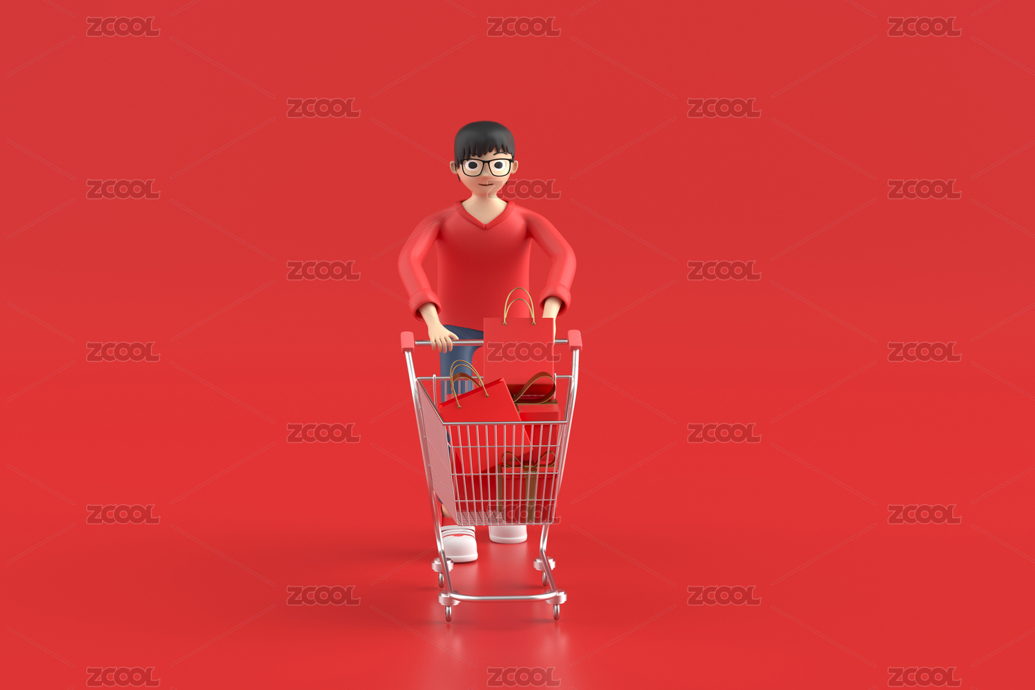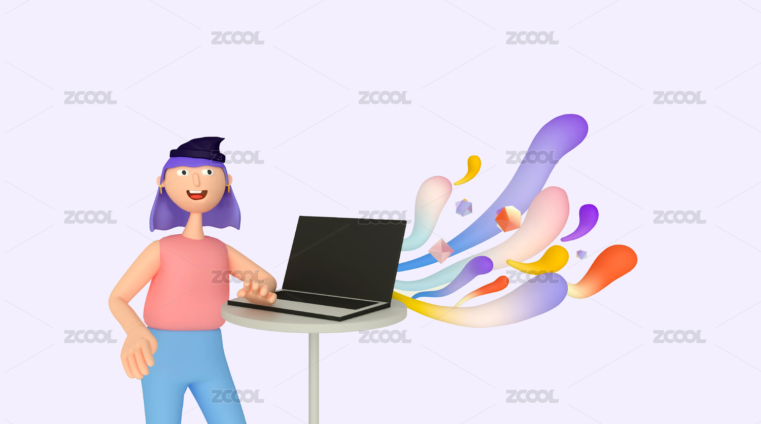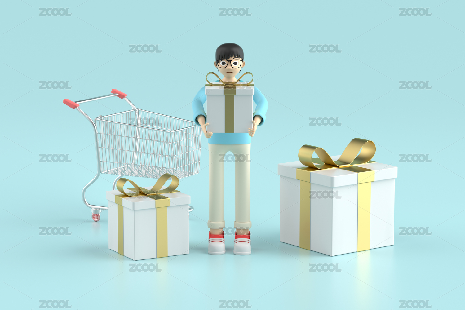 3D卡通人物電腦創(chuàng)意辦公在線購物促銷海報(bào)