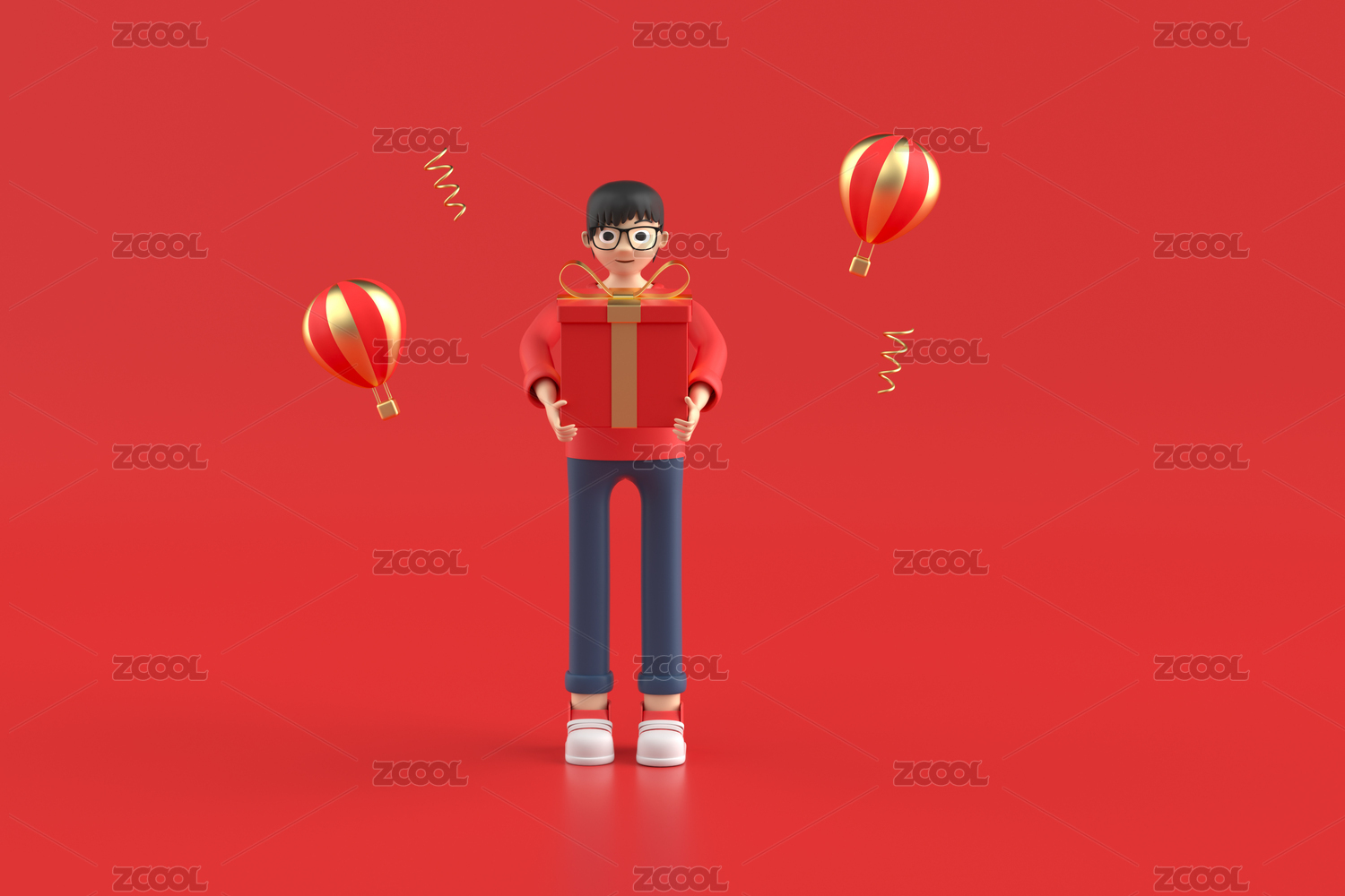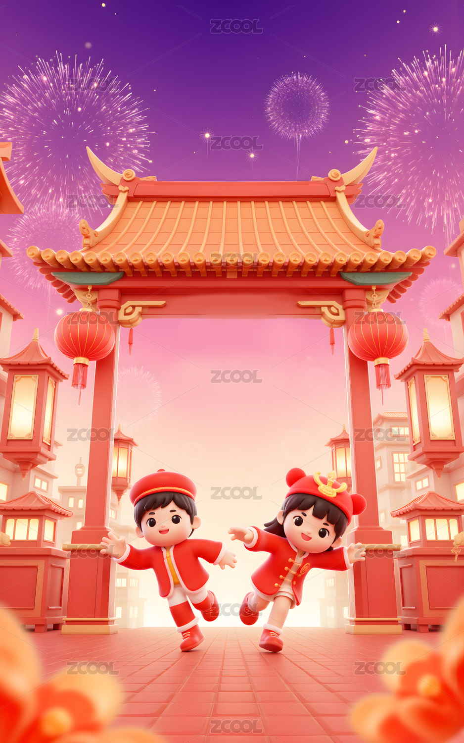 男孩和女孩在開心玩耍新年春節(jié)場景