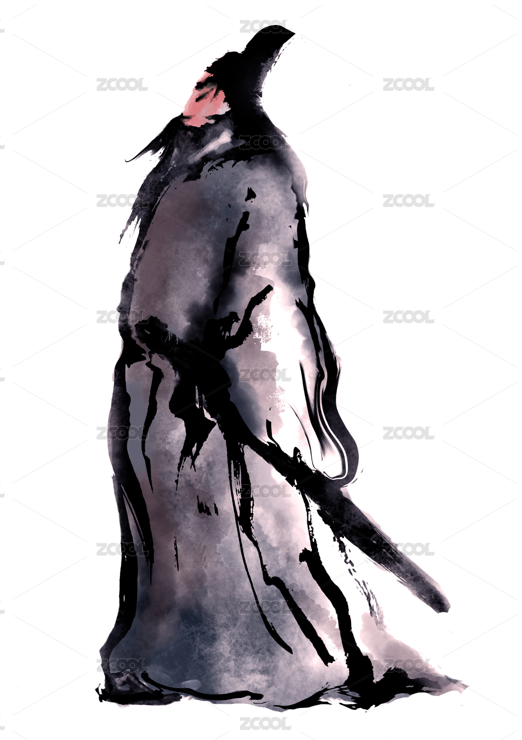 中國古代宋朝水墨古裝武俠水滸佩劍鐘馗人物