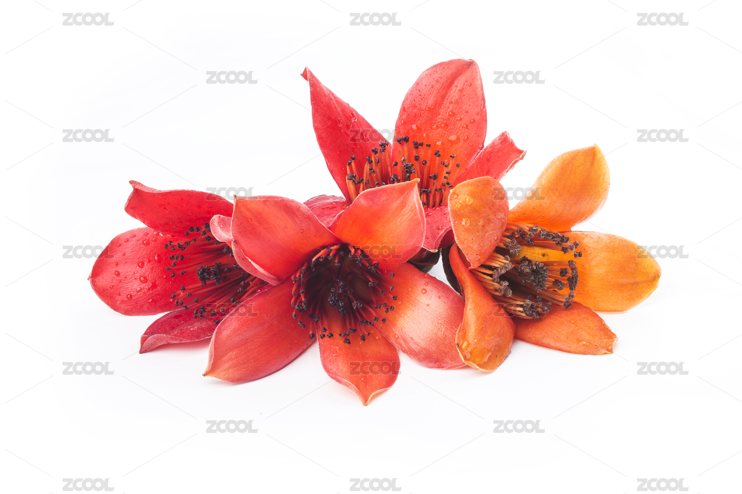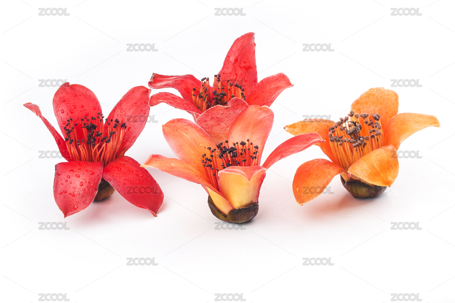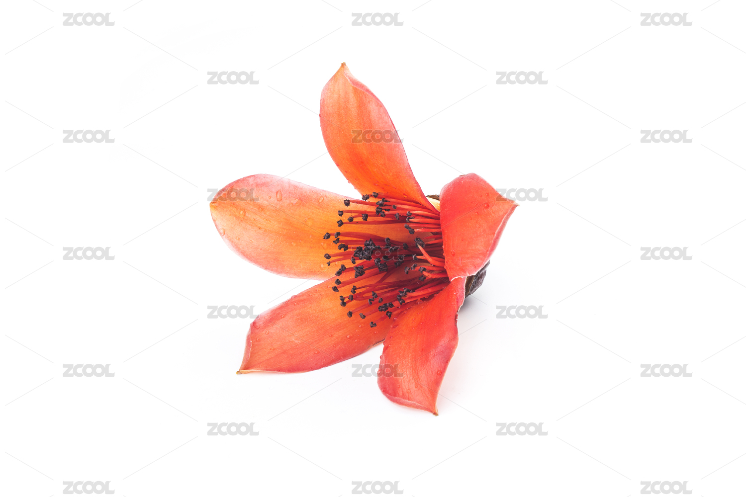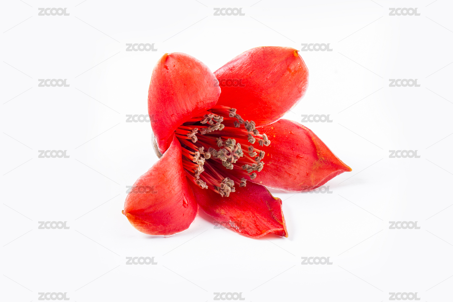 樹(shù)上一朵盛開(kāi)的紅色木棉花和幾個(gè)花蕾