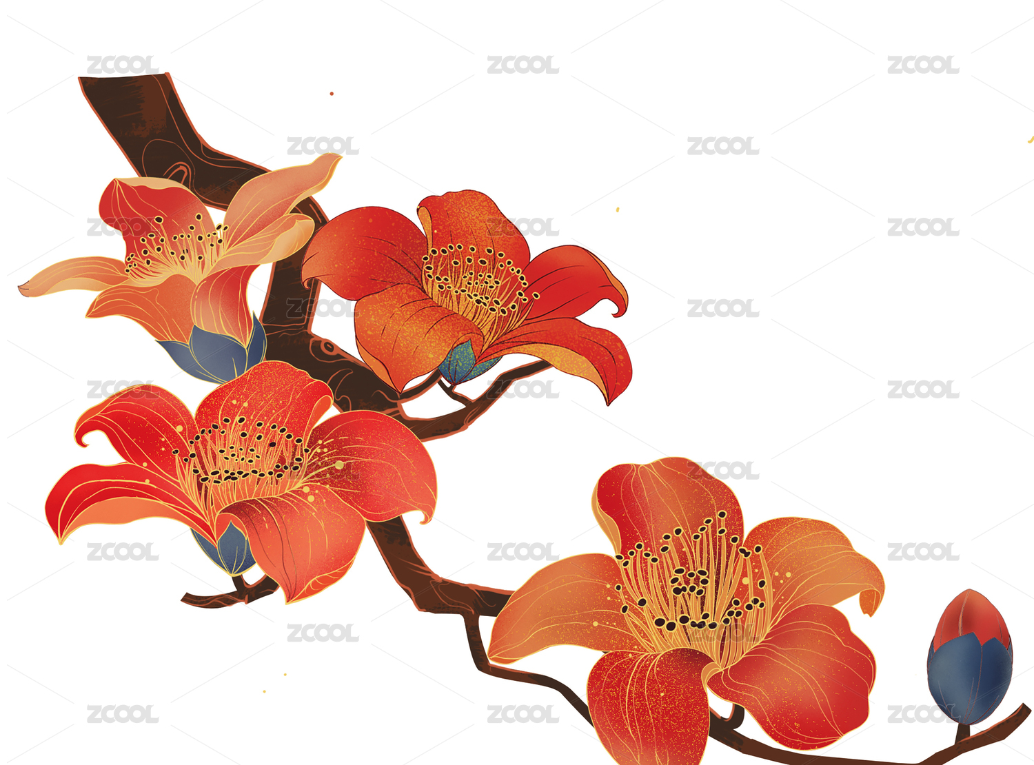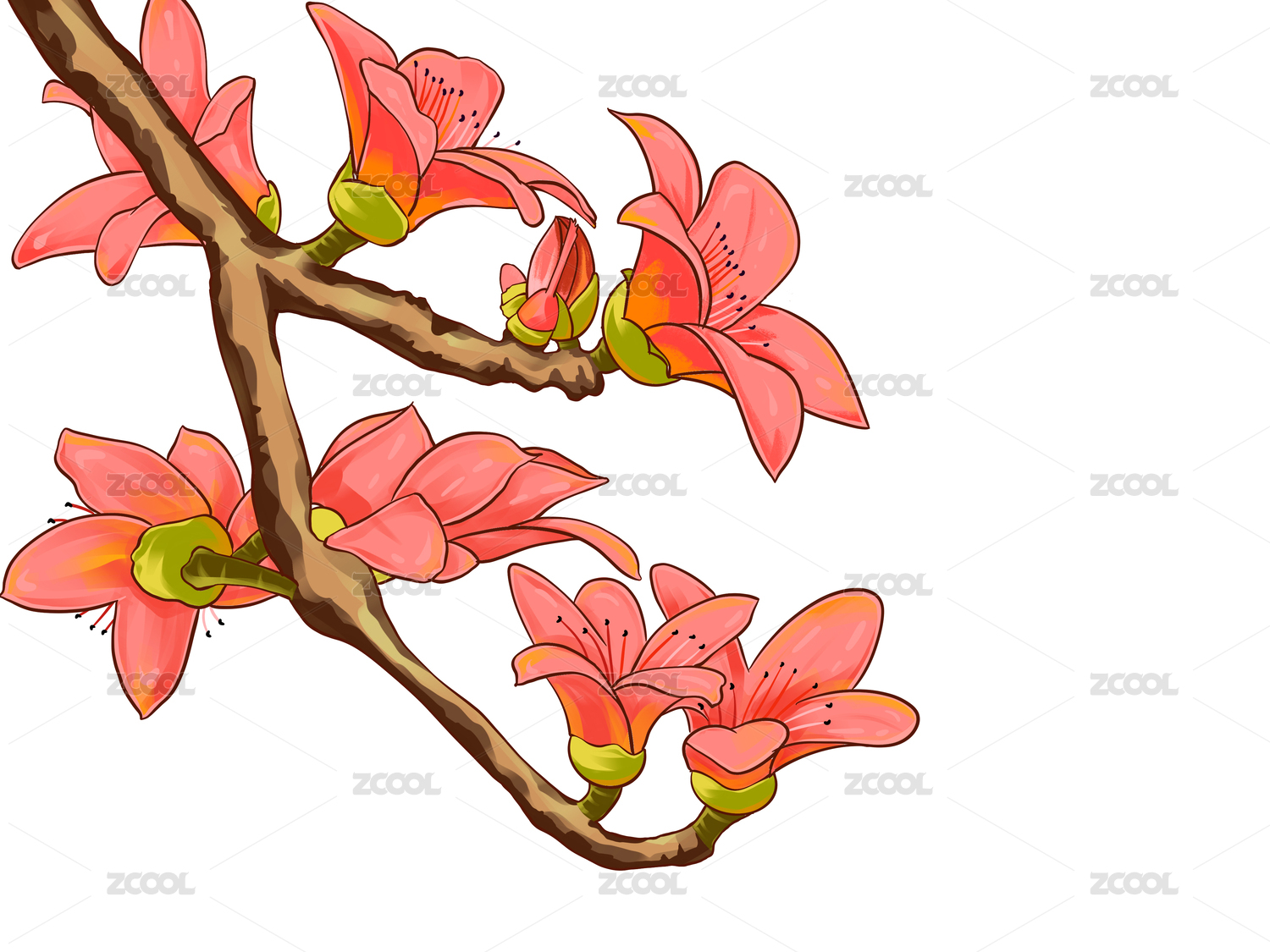 粉色寫(xiě)實(shí)盛開(kāi)的木棉花花枝素材