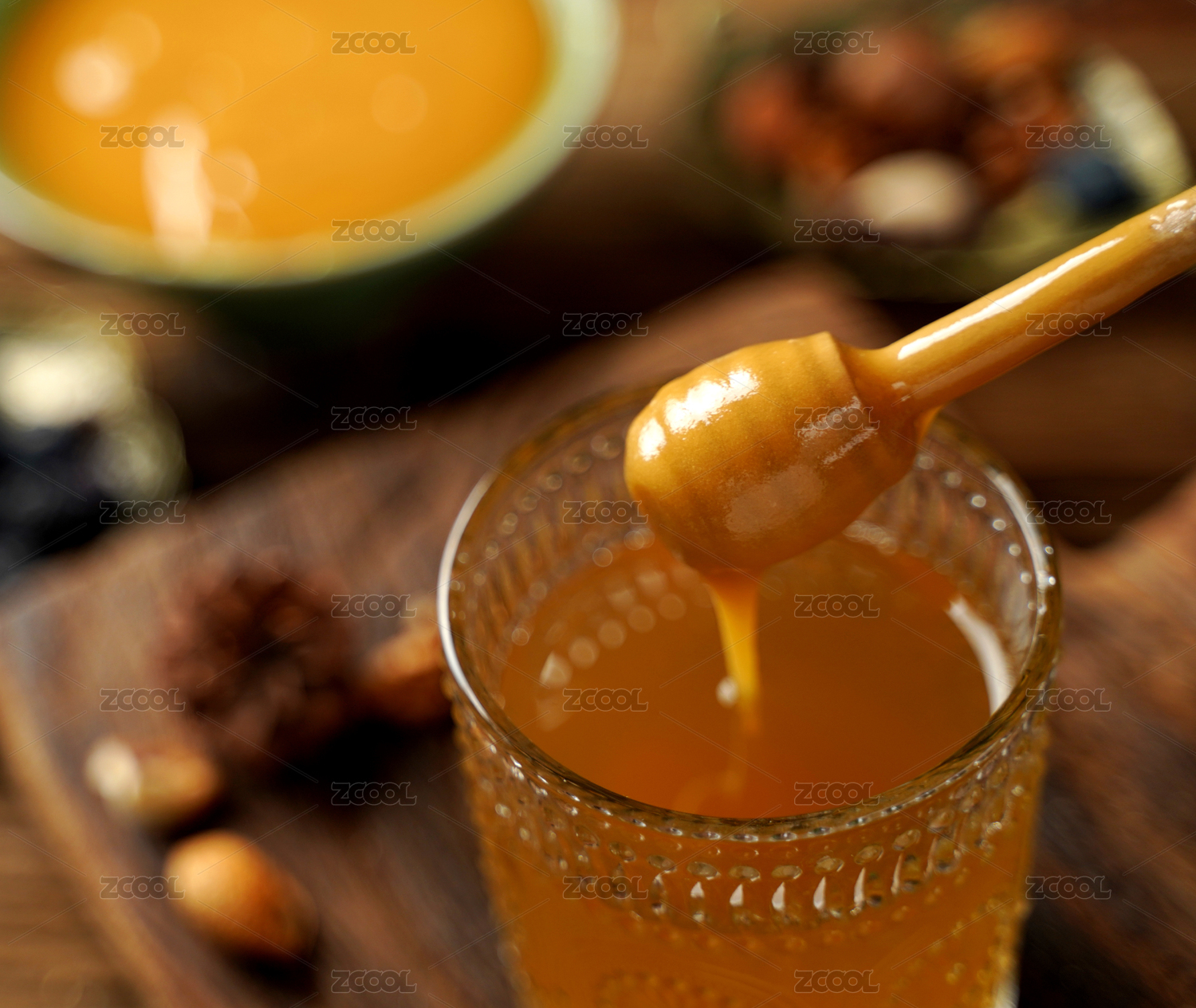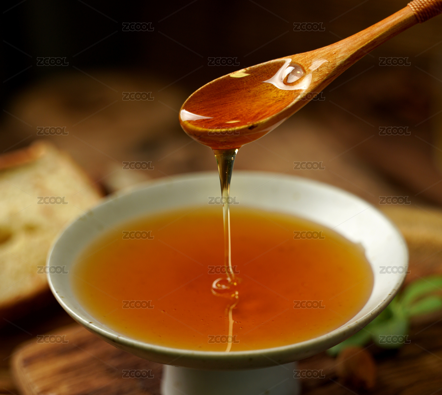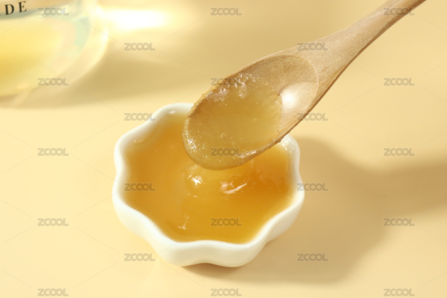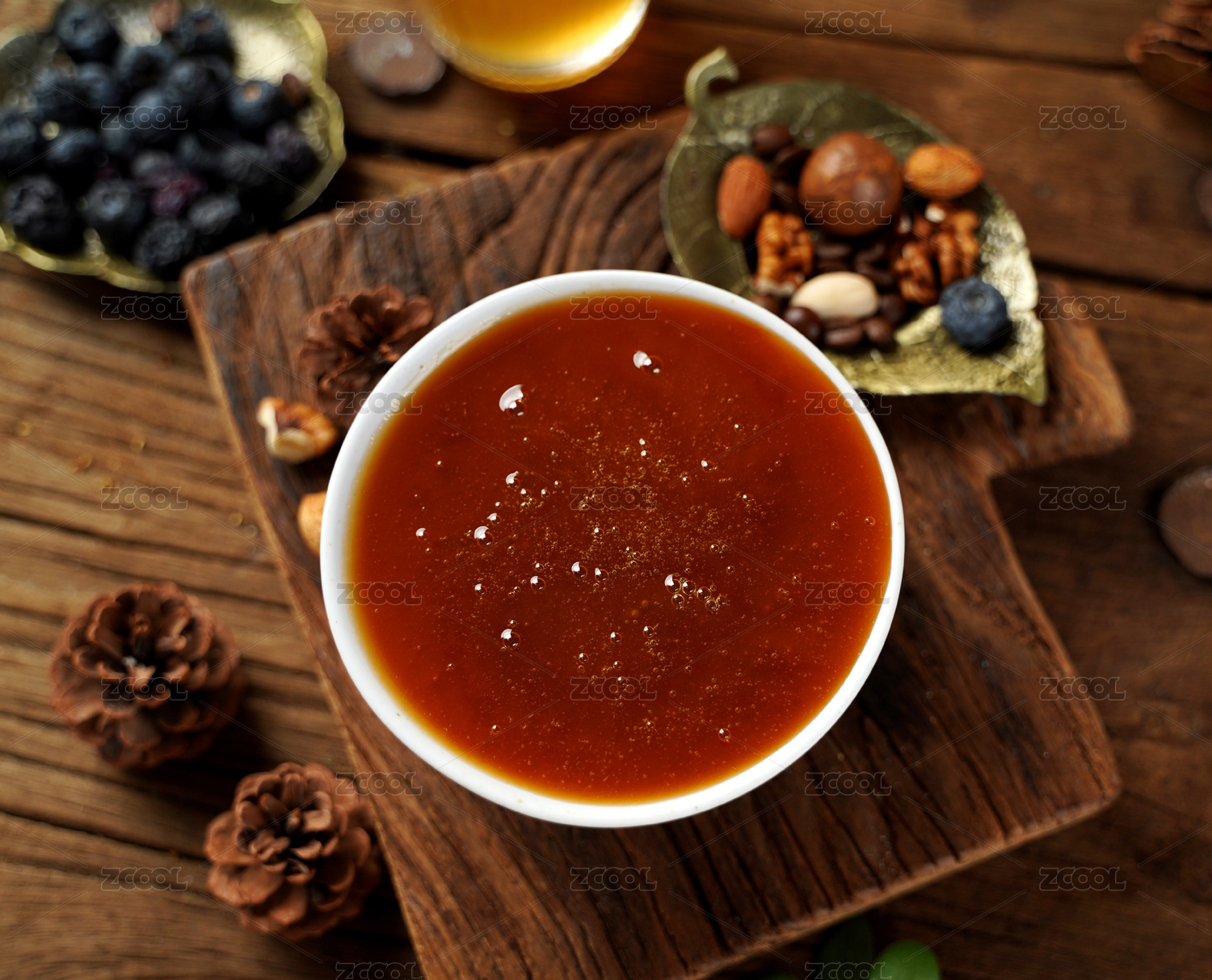 黑底圖放在古樸瓦罐里的土蜂蜜緩慢倒出