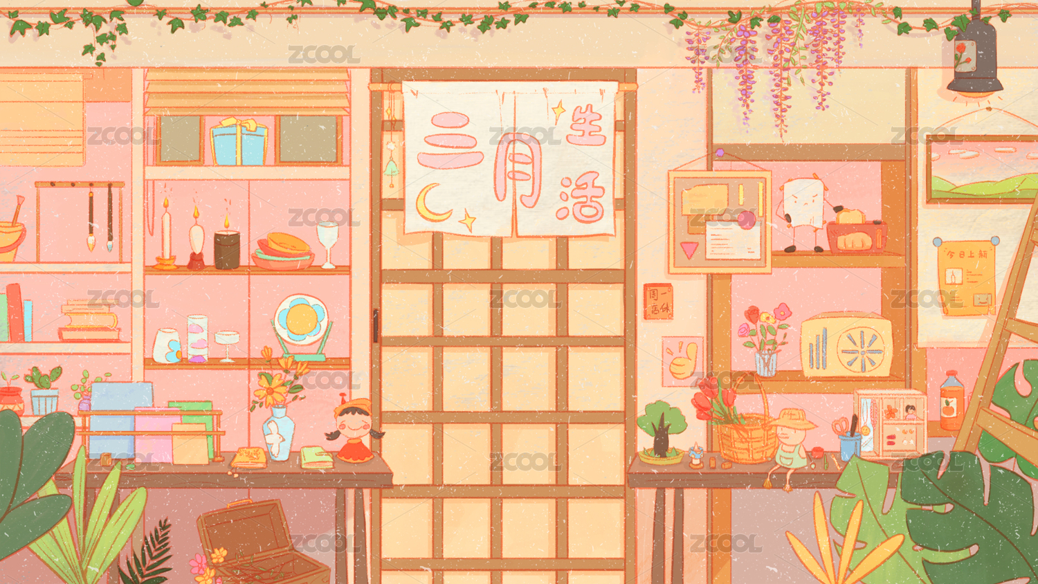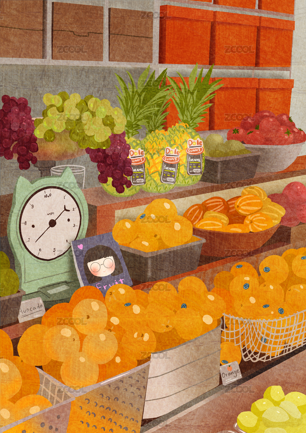 可愛(ài)復(fù)古雜貨店鋪紋理插畫(huà)