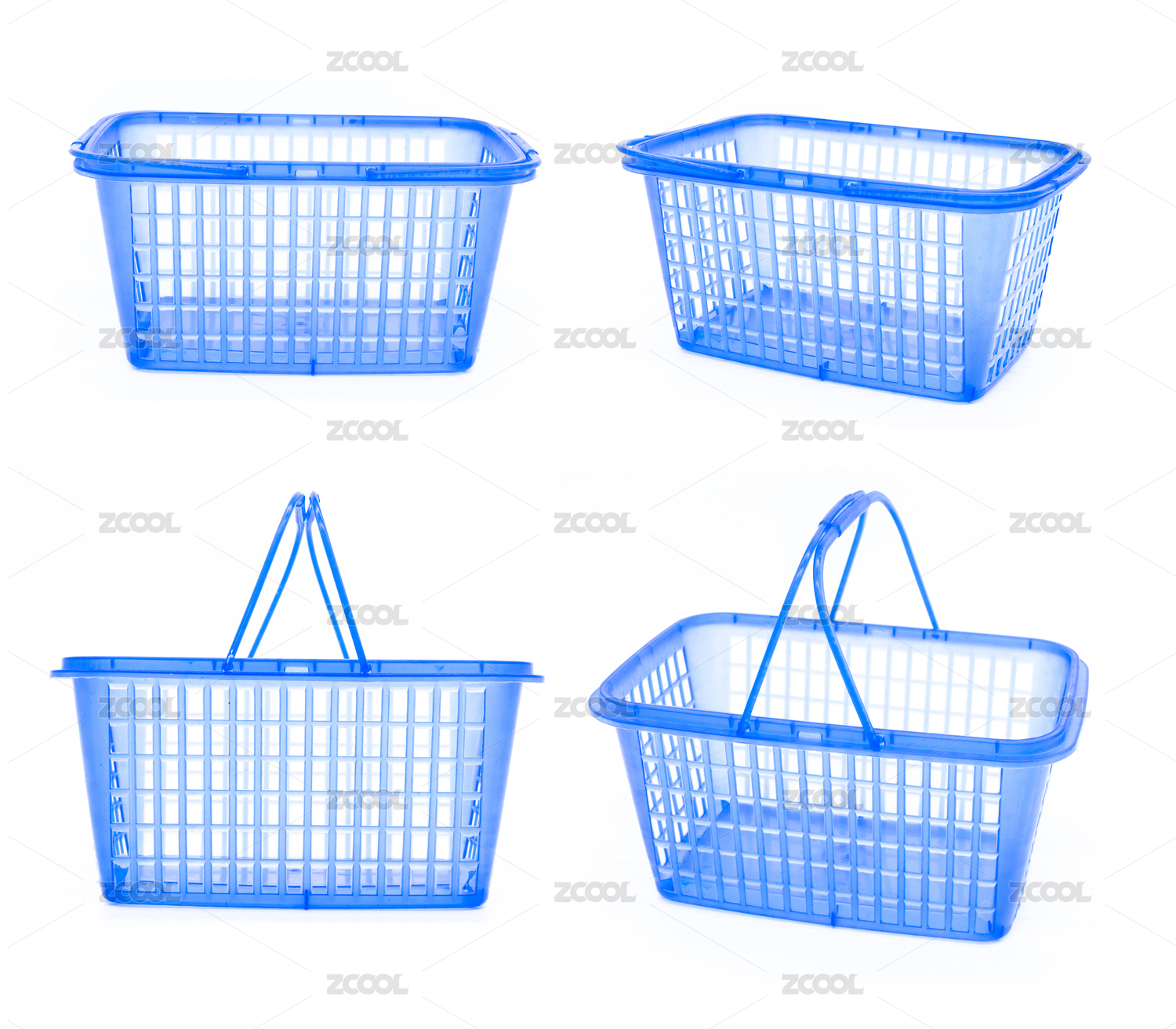白色背景上的一個(gè)藍(lán)色塑料手提籃