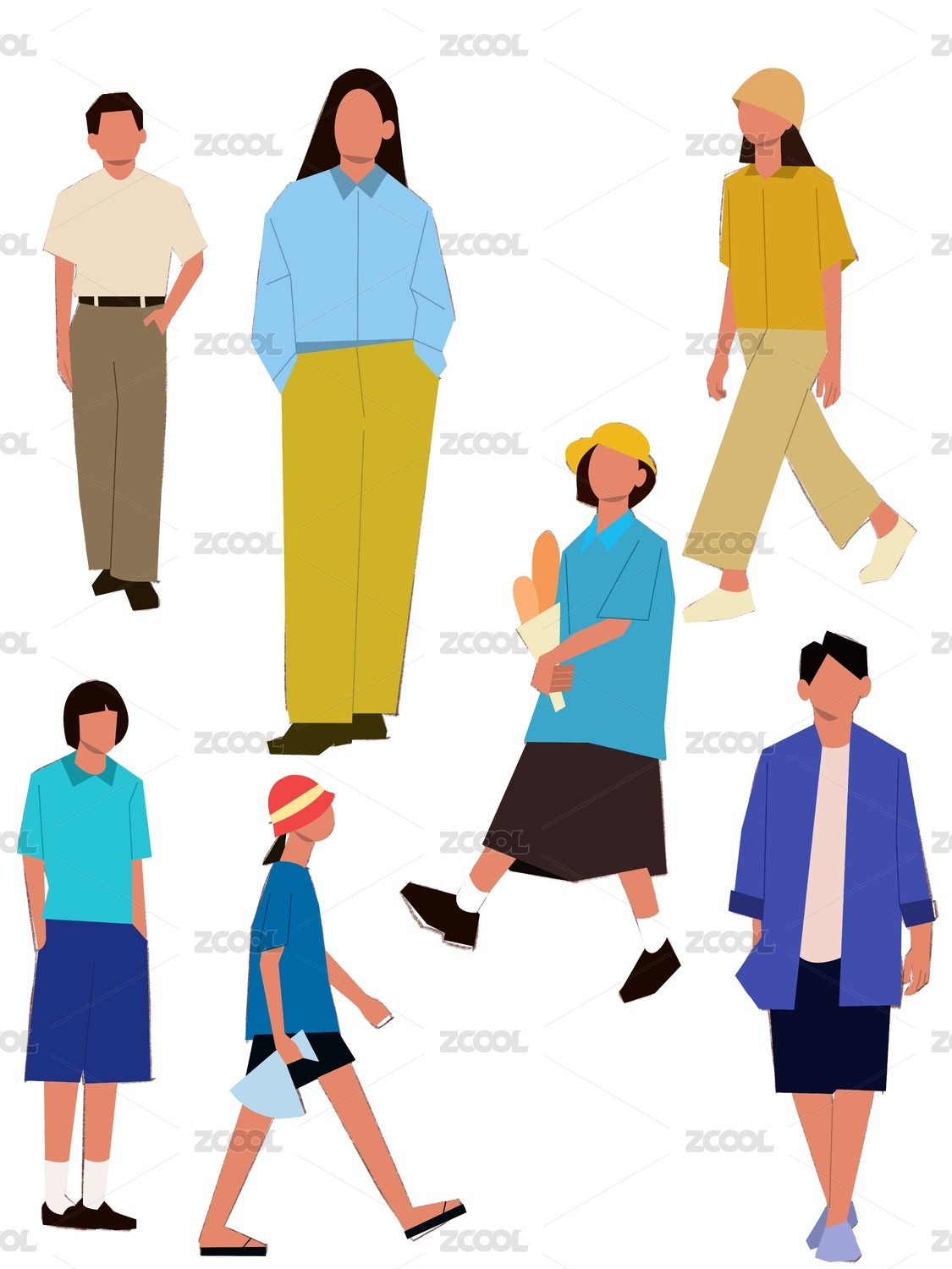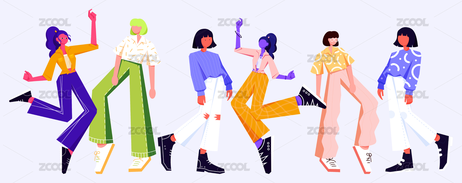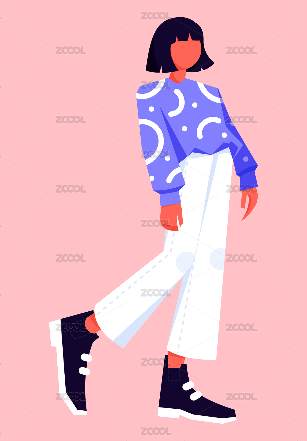 潮流時尚正在走路行走男性女性人物扁平插畫