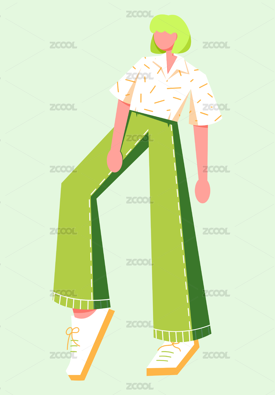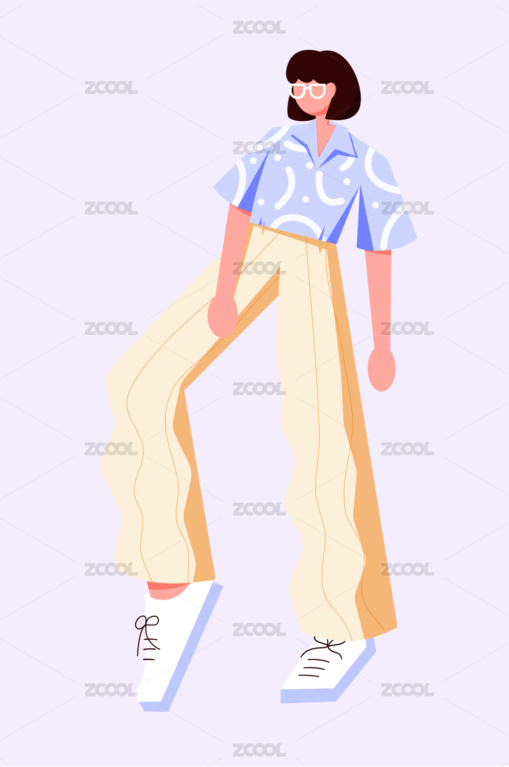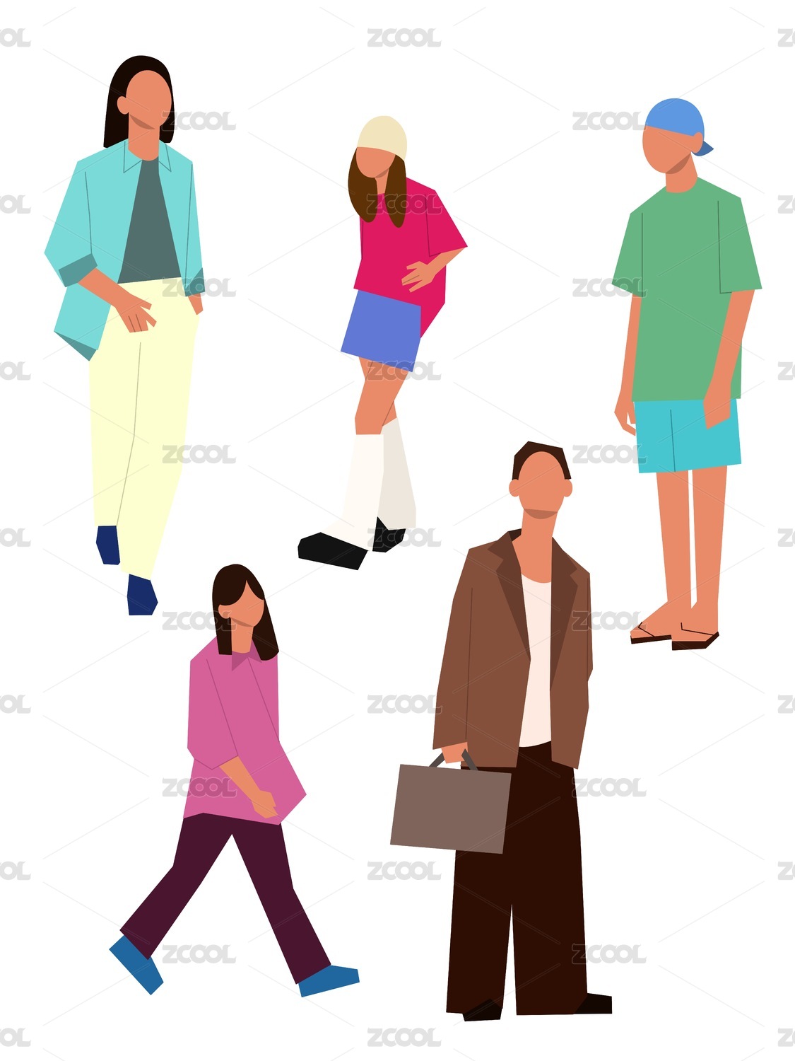 潮流時尚正在走路行走男性女性人物扁平插畫
