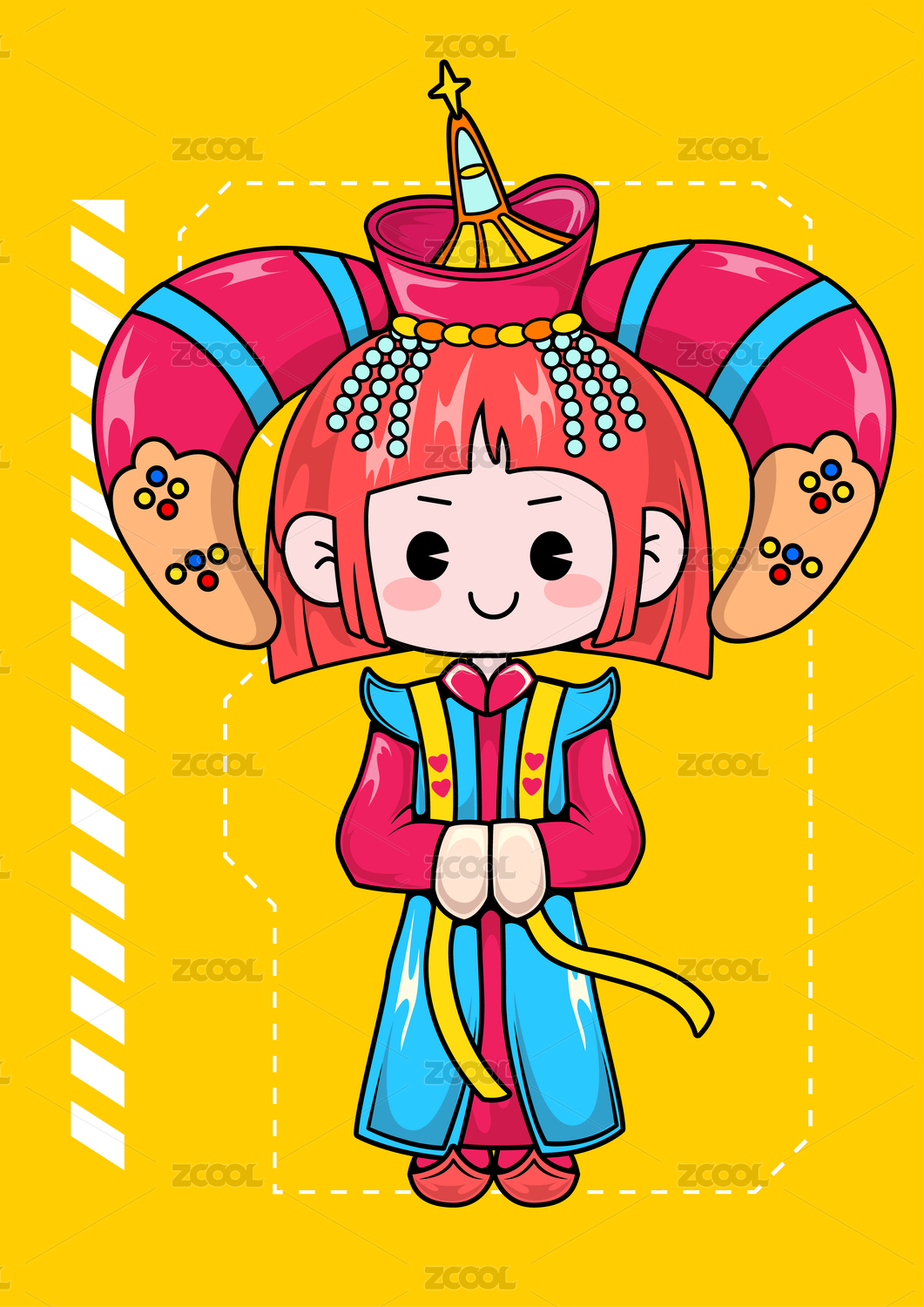 少數(shù)民族少女卡通盲盒人物矢量插畫