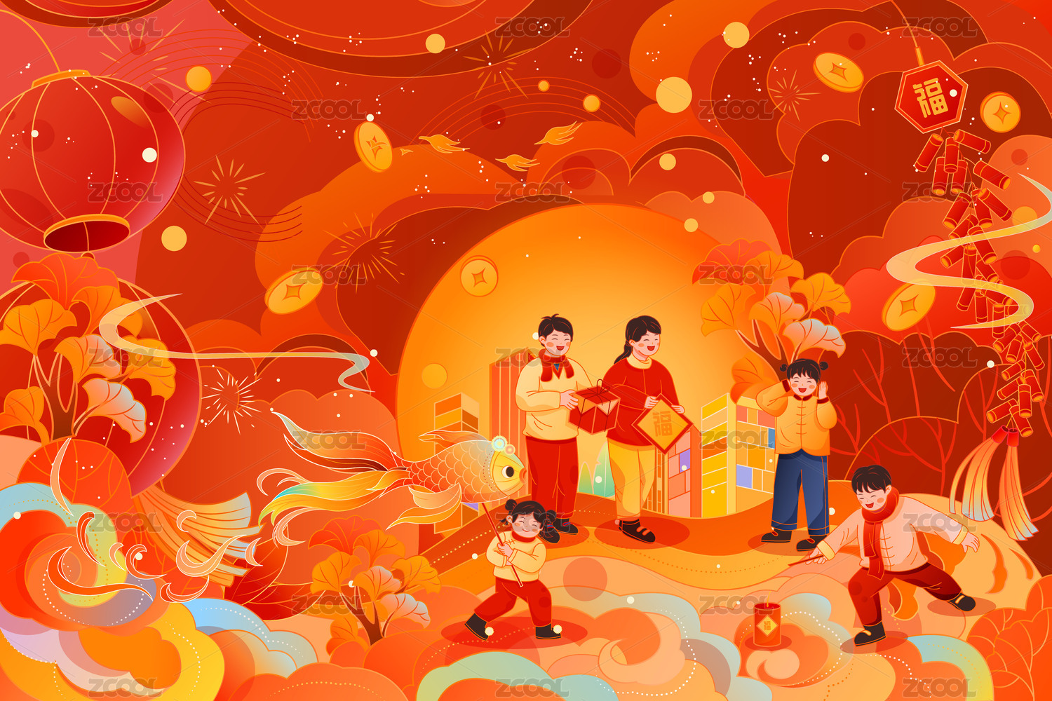 秋冬潮流人物時尚出游城市扁平噪點插畫