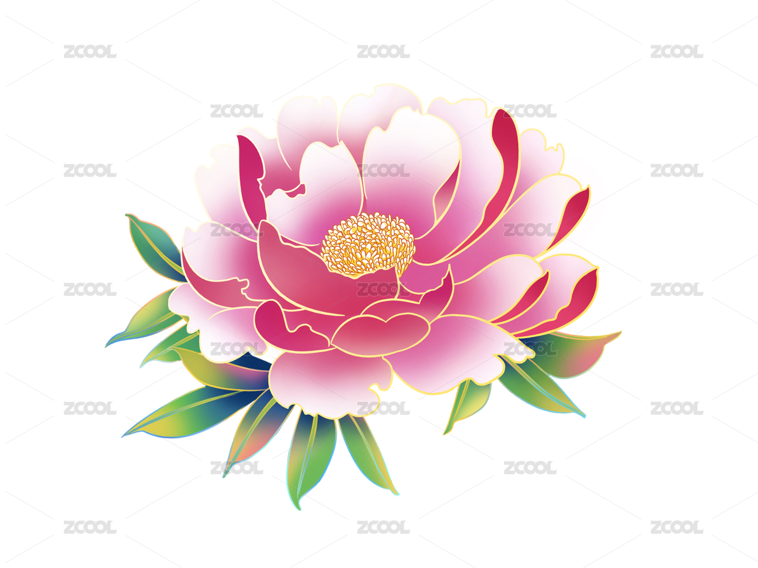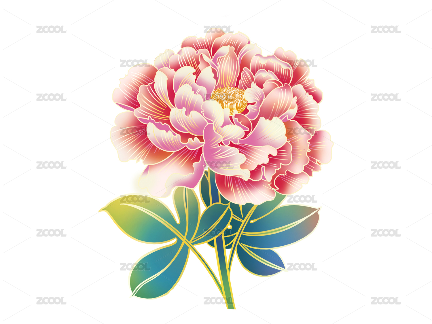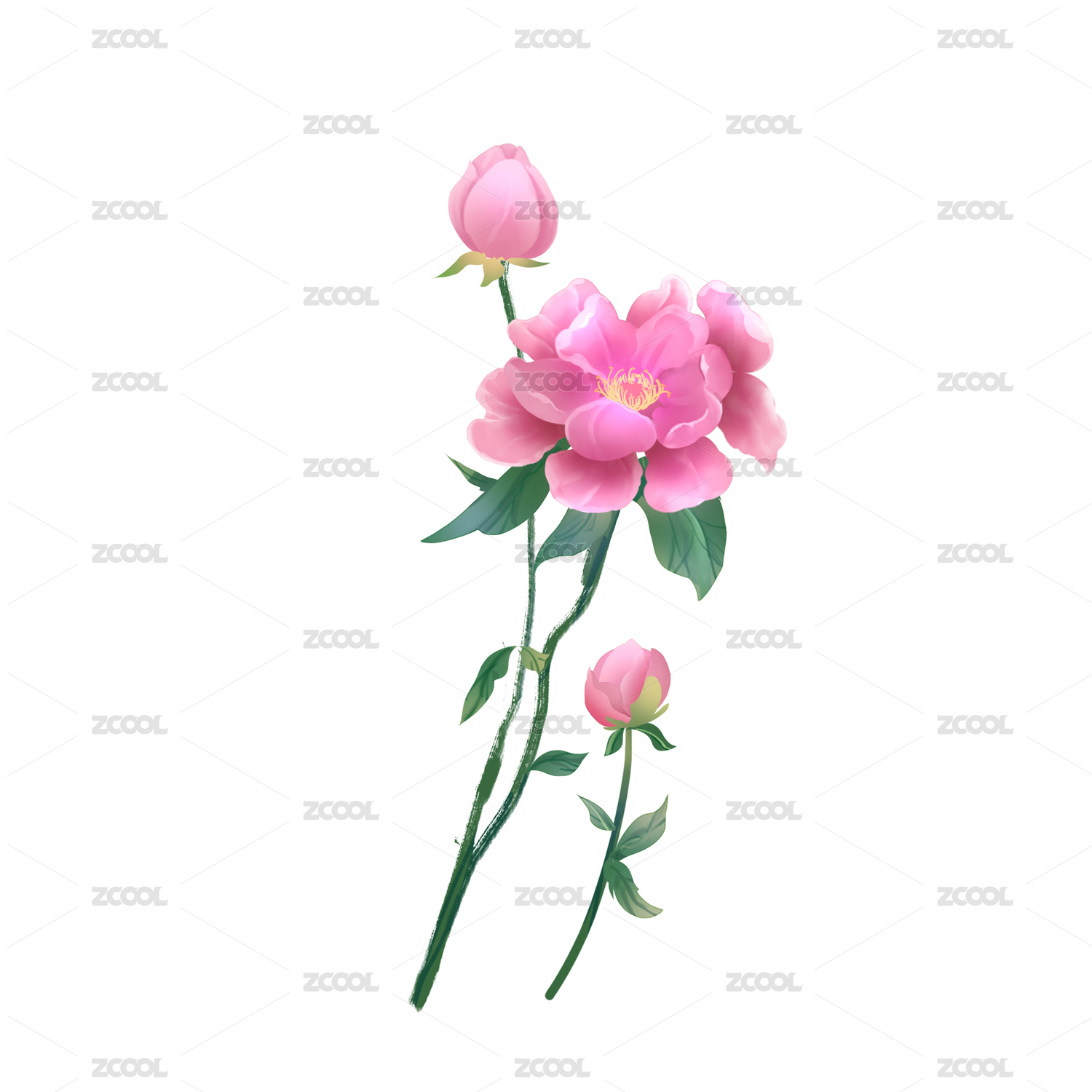 牡丹芍藥國潮手繪插畫元素紋樣