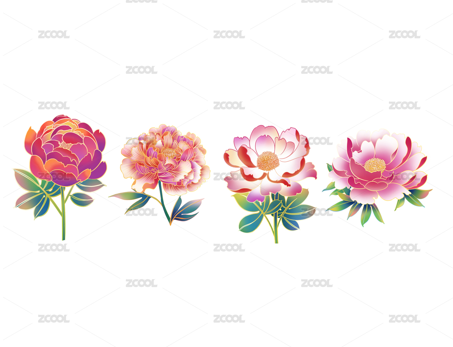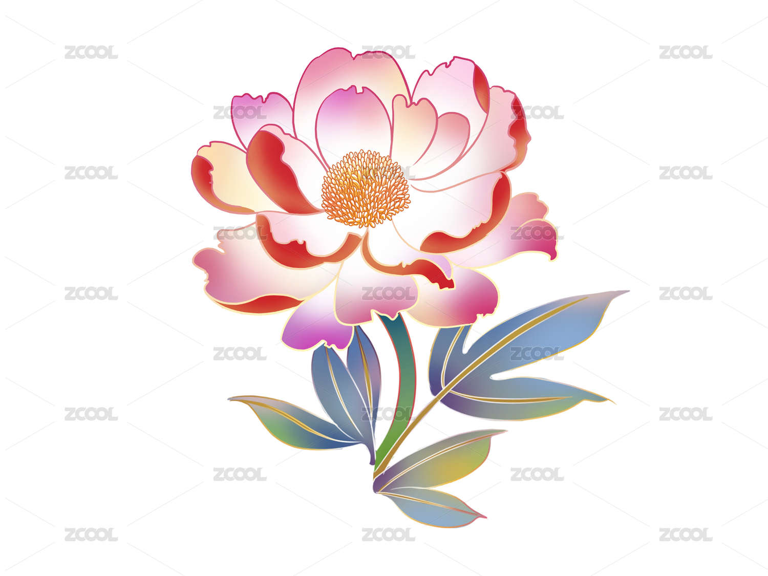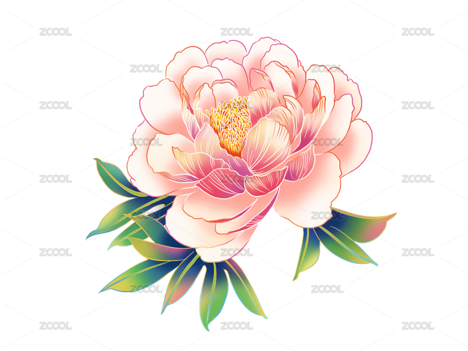 牡丹芍藥國潮手繪插畫元素紋樣
