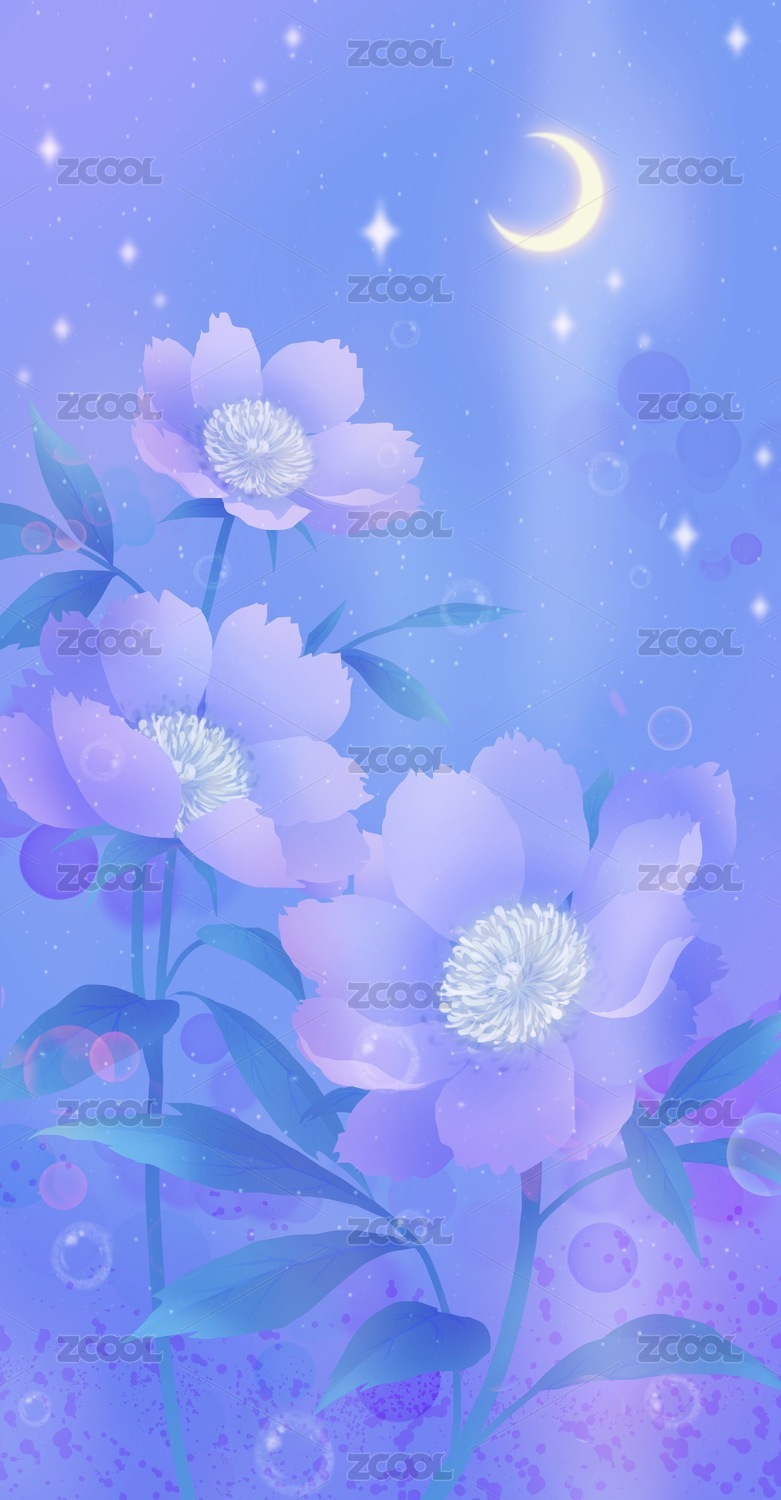 藍色夜空下的芍藥 唯美
